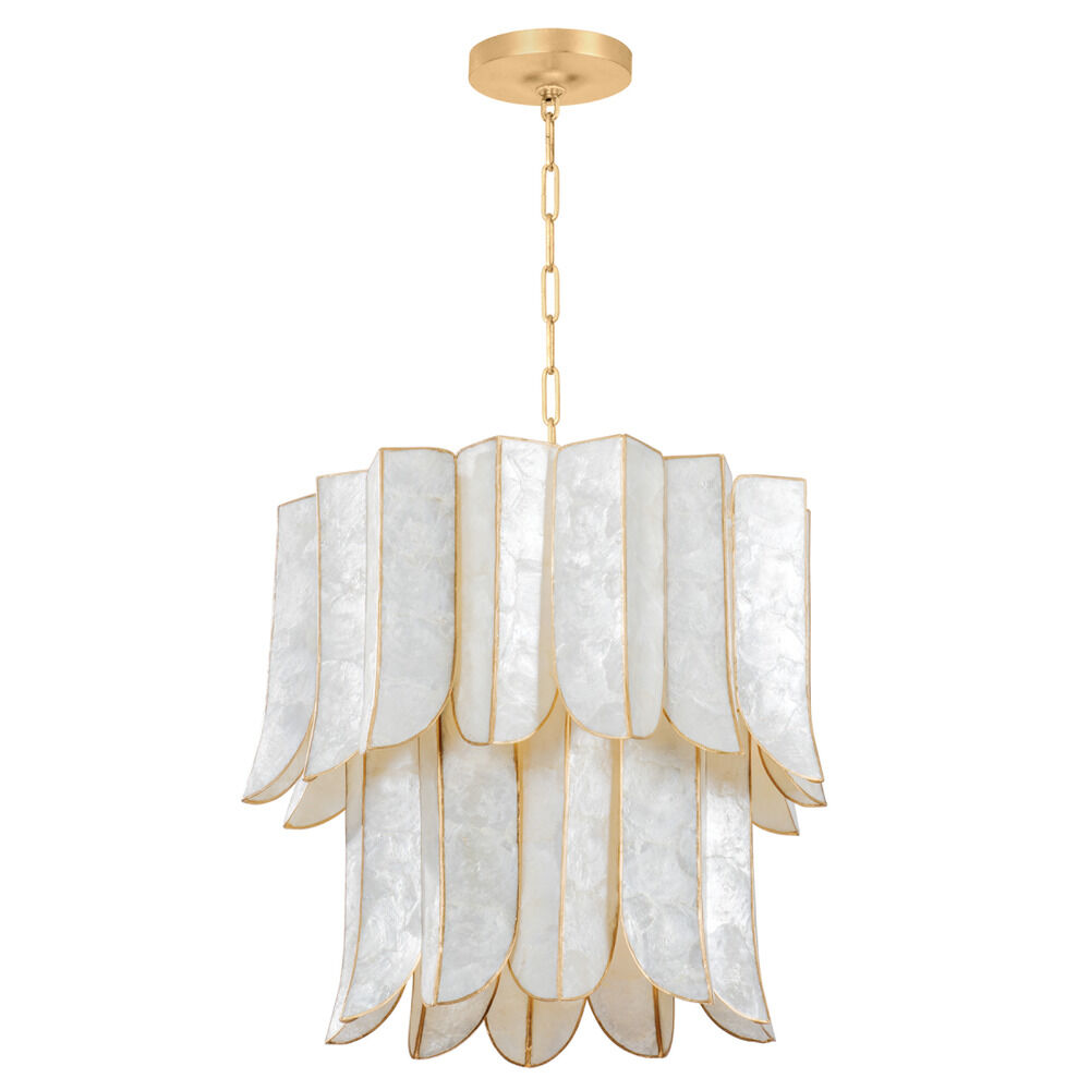 Capturing the dynamism of its namesake city, Cartagena cuts an impressive figure with its shimmering layers and exquisite materiality. Tiers of lustrous leaf-shaped panels crafted from fine Capiz Shell exude drama and decadence. Vintage Gold Leaf heightens the glamor of this statement piece, which comes as a sconce or chandelier in three sizes. Due to the one-of-a-kind nature of the medium, exact colors and patterns may vary slightly from the image shown.