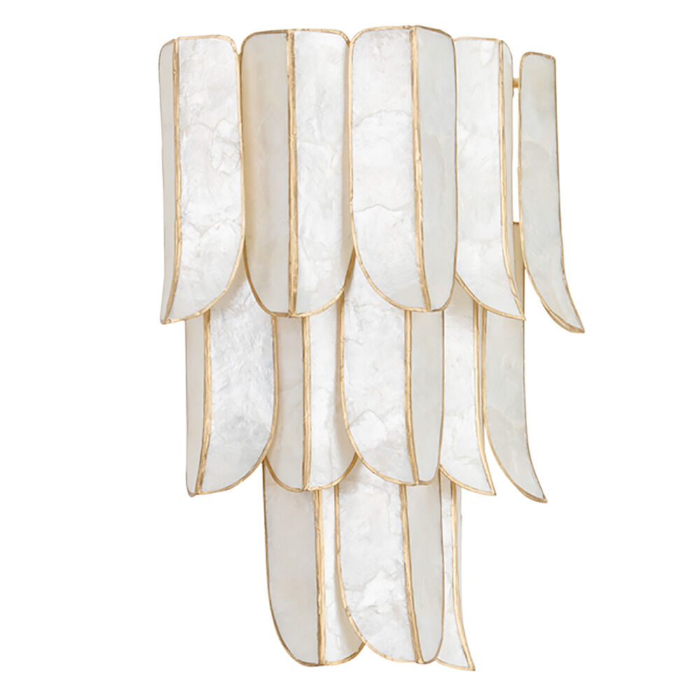 Capturing the dynamism of its namesake city, Cartagena cuts an impressive figure with its shimmering layers and exquisite materiality. Tiers of lustrous leaf-shaped panels crafted from fine Capiz Shell exude drama and decadence. Vintage Gold Leaf heightens the glamor of this statement piece, which comes as a sconce or chandelier in three sizes. Due to the one-of-a-kind nature of the medium, exact colors and patterns may vary slightly from the image shown.
