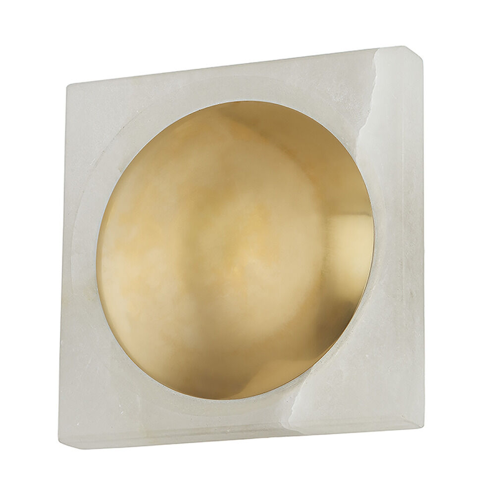 Mixing materials and playing with shapes, Hamel places a metal disc shade in front of a natural stone backplate. An LED behind the shade backlights the Vintage Brass or Burnished Nickel finish and flows through to illuminate the alabaster with a soft glow. Available as a sconce or a flush mount in two different sizes.Due to the one-of-a-kind nature of the medium, exact colors and patterns may vary slightly from the image shown.