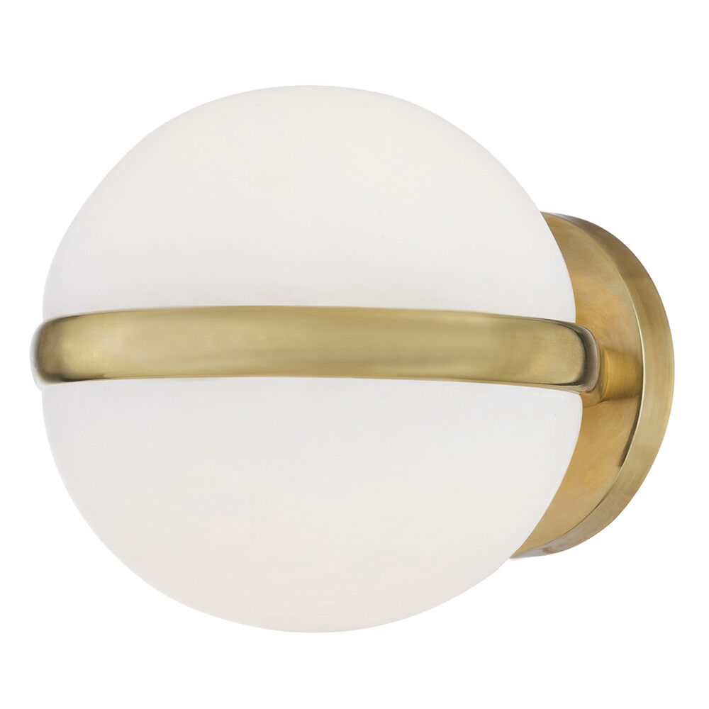 Gorgeous alabaster globes wrapped at the center by a band of Vintage Brass give the Kyomi wall sconce and chandelier a retro look that feels current. Mount the chandelier close to the ceiling to add instant glam to any space.Due to the one-of-a-kind nature of the medium, exact colors and patterns may vary slightly from the image shown.