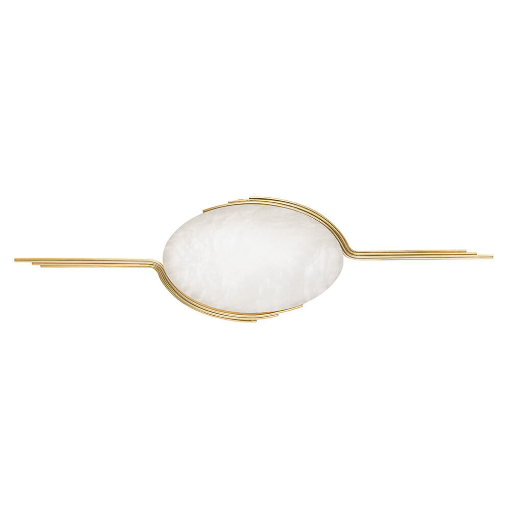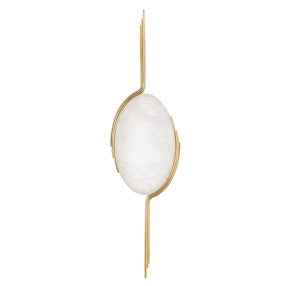 Elevate indoor spaces with the Corbett Lighting Lapis 1-Light LED Wall Sconce in an elegant Vintage Brass finish, a sculptural accent light that combines luxurious materials with refined illumination. Crafted with a smooth oval Spanish alabaster shade embraced by intricately detailed brass curves, this statement wall sconce reflects light beautifully while casting warm, inviting ambience.