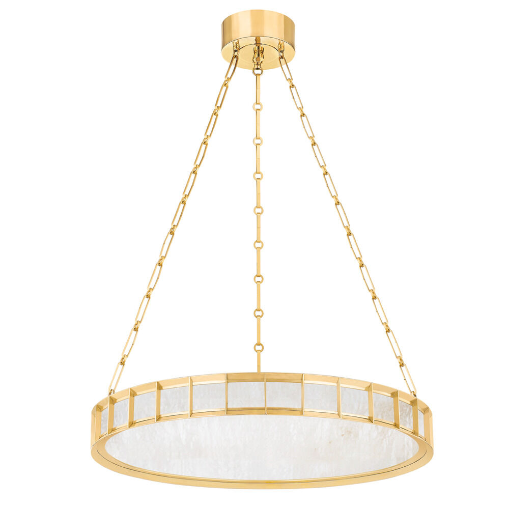 The following are detailed specifications about the Corbett Lighting Leda Vintage Brass LED Pendant Light with Drum Shade.