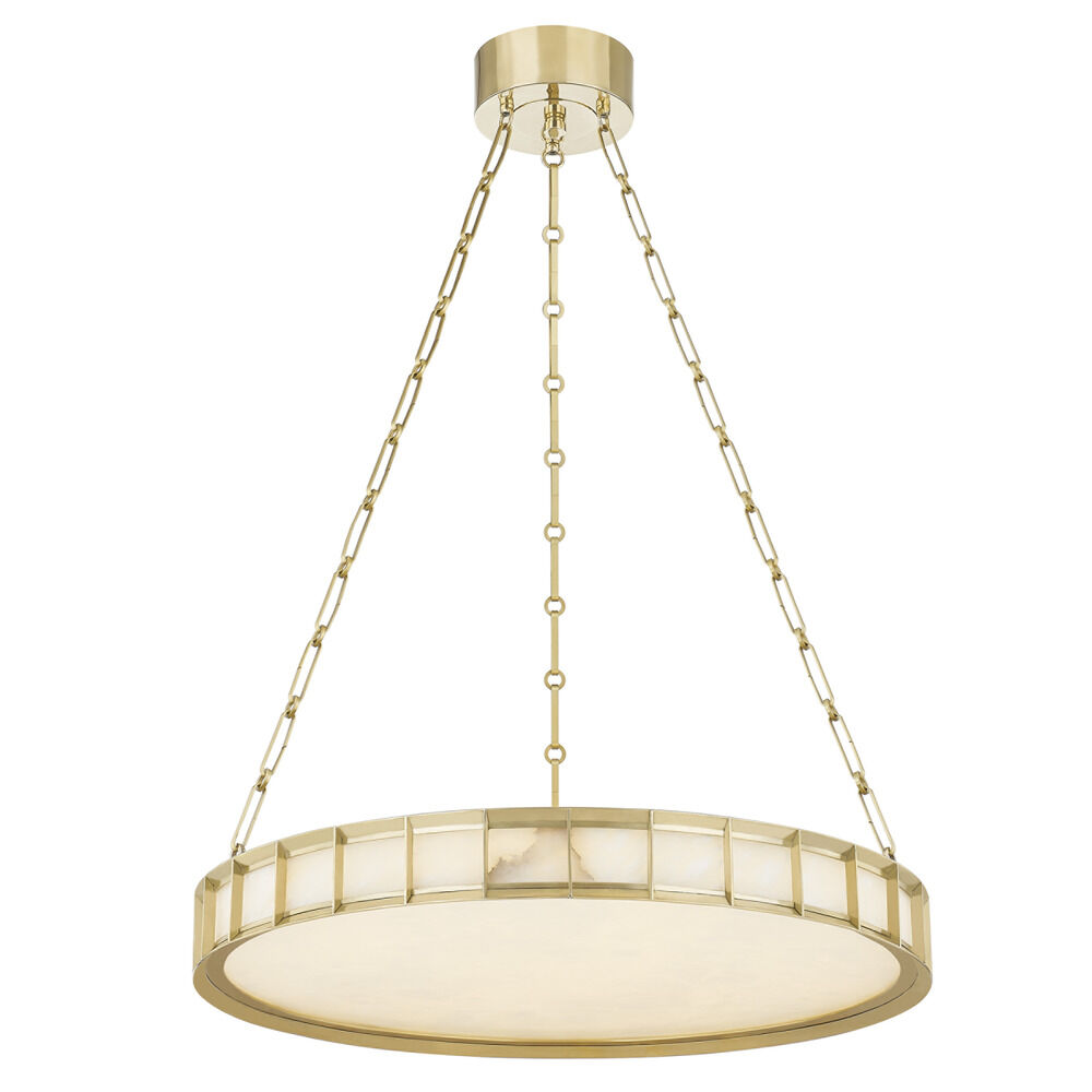 Corbett Lighting Leda Vintage Brass LED Pendant Light with Drum ShadeManufacturer: Corbett Lighting Model #: 346-30-VB Corbett Lighting Leda Vintage Brass LED Pendant Light with Drum Shade