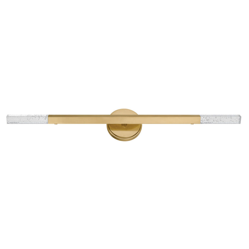 Bold and architectural, the Strasbourg family gives Art Deco style a modern twist. Available in two sizes, the chandelier features a fanned silhouette that forms a dynamic, artistic statement overhead. Finished in Vintage Brass, each arm is capped on both ends by a cast-seeded glass optic, creating an even spread of light that extends in all directions. The sconce shares the same edgy design language in a more compact, restrained form.