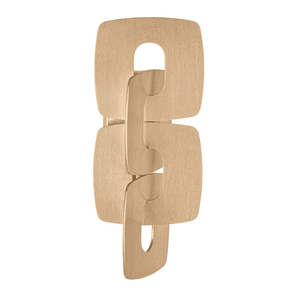 The Trentino sconce takes inspiration from a classic jewelry chain, magnifying the scale to produce a bold, modern lighting statement. Sculptural, yet simple, the geometric silhouette conceals the light source, which washes the wall with a warm glow. This engaging composition is available in two luxurious finishes, Stria Gold Leaf and Stria Silver Leaf.