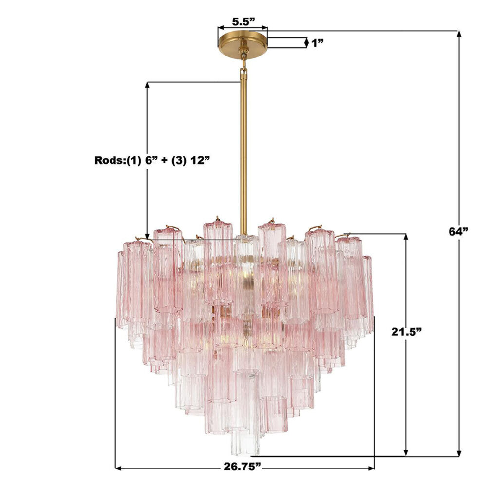 The following are detailed specifications about the Crystorama Lighting Addis Aged Brass Chandelier.