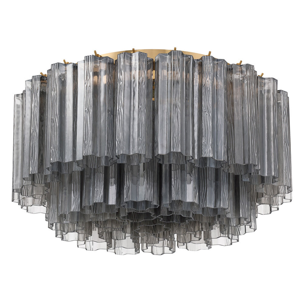 Contemporary / modern aged brass 7-light indoor ceiling light with clear smoke glass shade