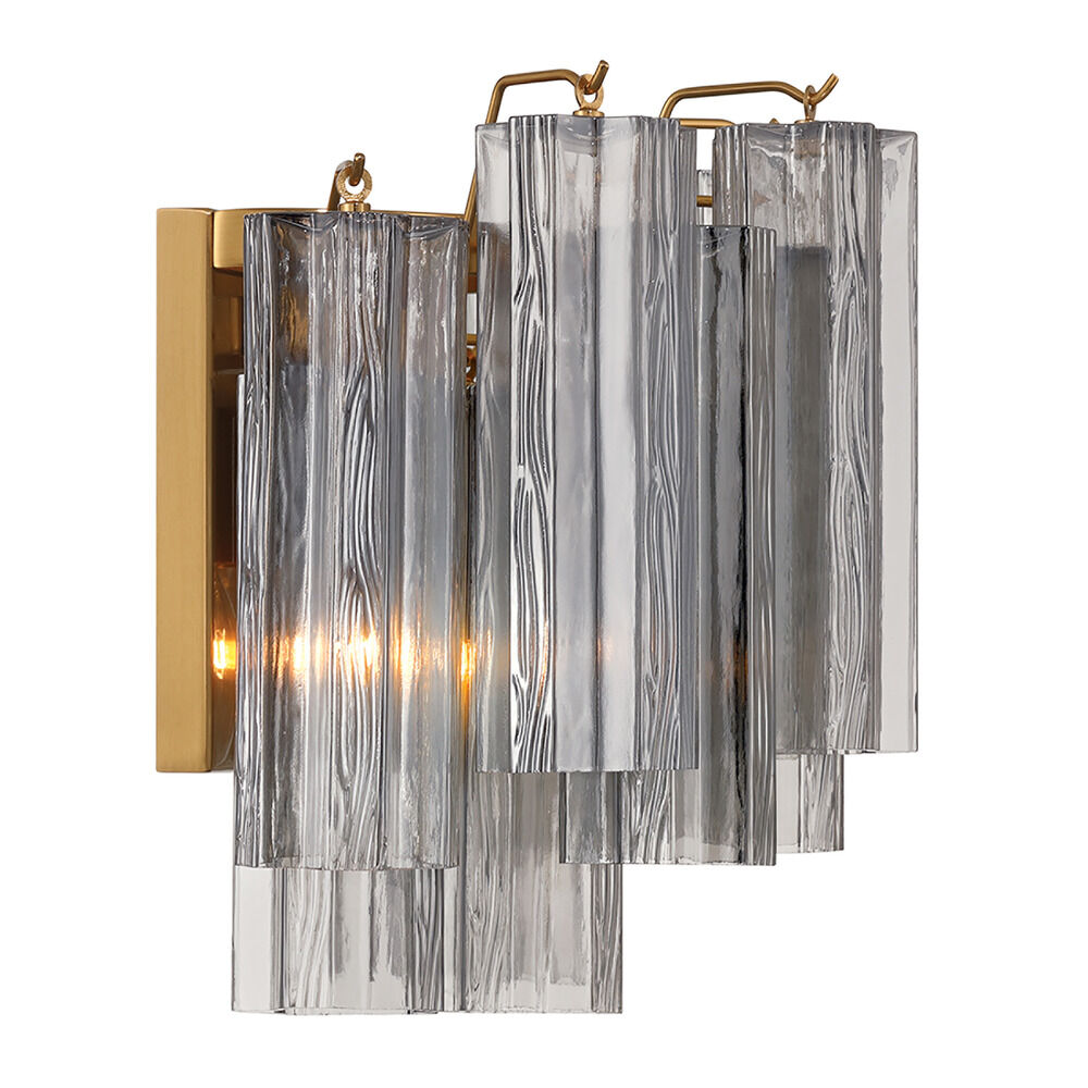 Contemporary / modern aged brass 2-light sconce with clear smoke glass shade