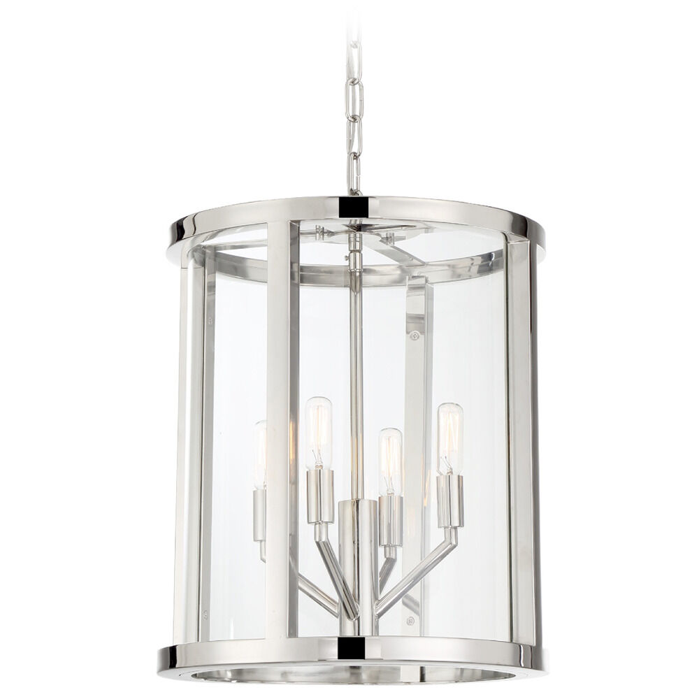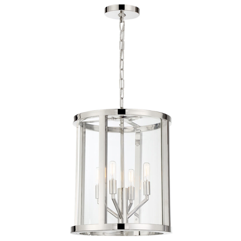 The Devon collection, designed by Libby Langdon, is a study in simple elegance with its clean lines and sleek polished nickel frame. With a variety of sizes, it can work in a myriad of different design styles. Circular at the top and bottom, its intersecting vertical frame sections showcase the fixture's height. The clear glass panels give the perfect peek at the inner angular arms, and the polished nickel finish of the candelabra arms give it a modern twist. Sometimes, a room's design requires a straightforward light fixture, but it can still be striking and become an integral part of the space. The Devon lighting collection offers a livable look that is chic, stylish and understated in just the right way.