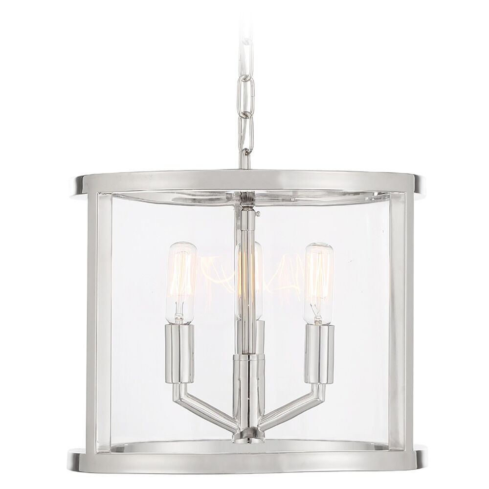 The following are detailed specifications about the Crystorama Lighting Devon Polished Nickel Pendant Light with Drum Shade.