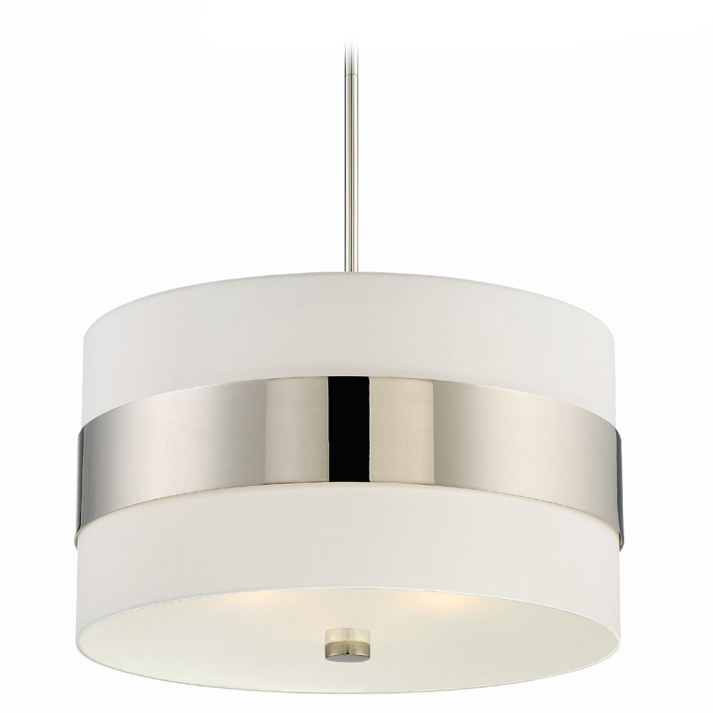 The following are detailed specifications about the Crystorama Lighting Grayson Polished Nickel Pendant Light with Drum Shade.