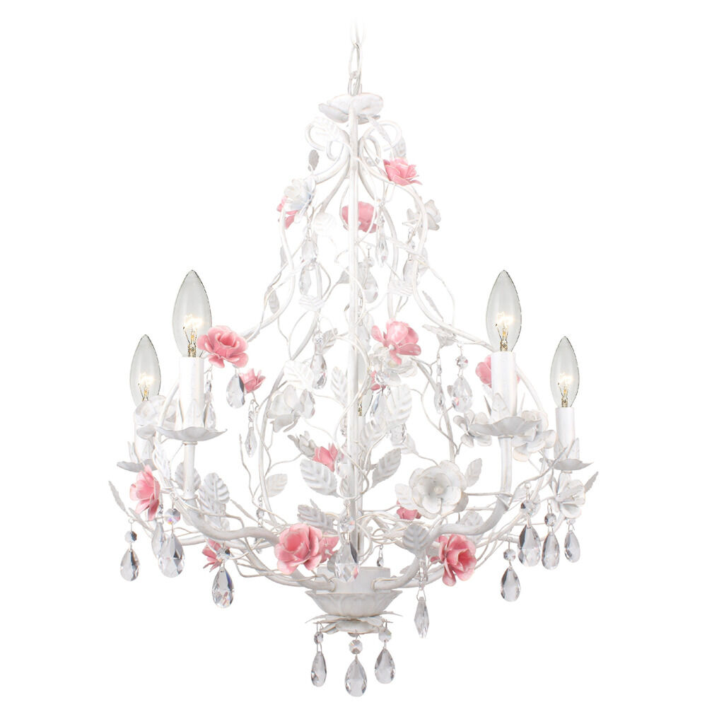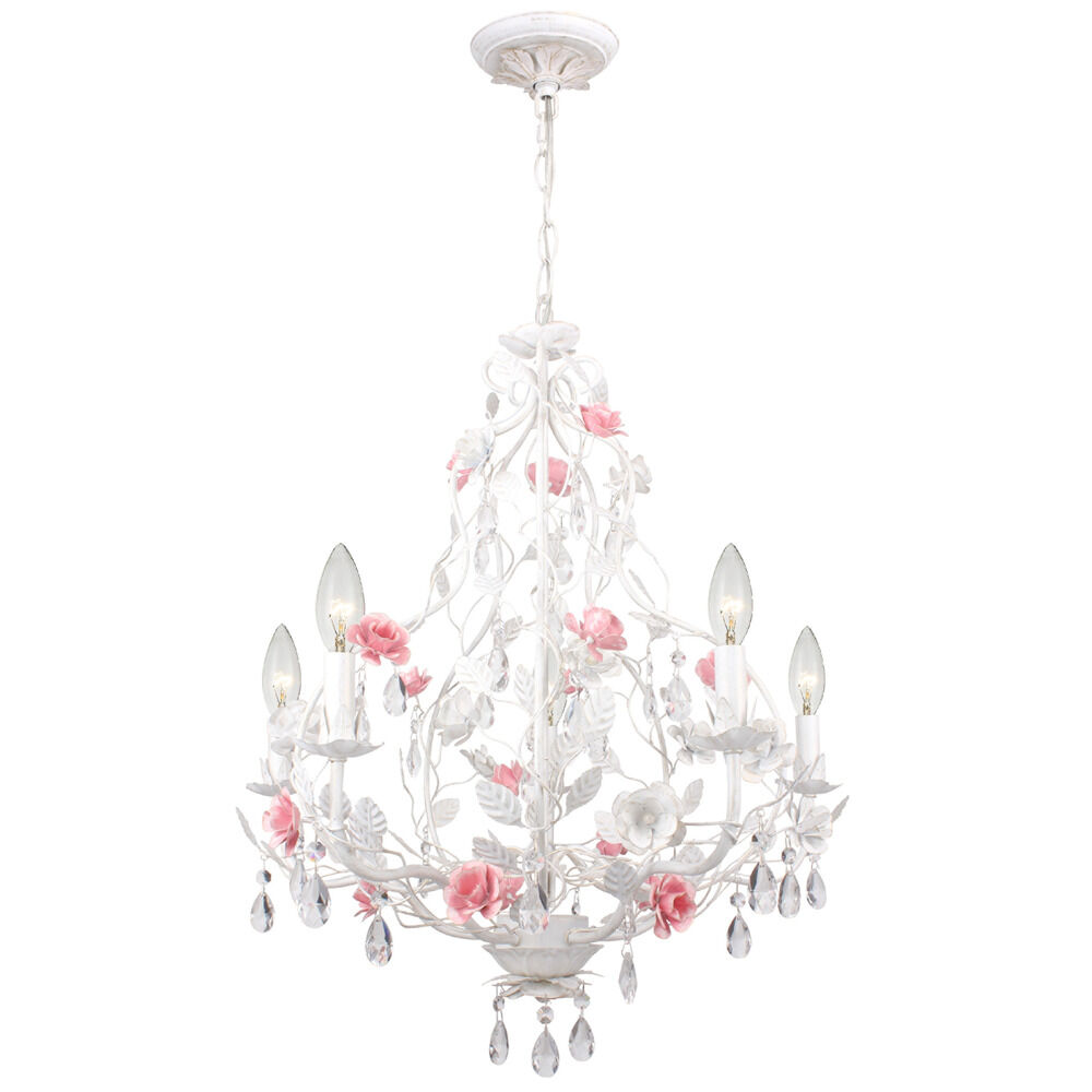The Lola features a feminine, yet casual fixture. Inspired by the Paris Market, Le Puces de Paris Saint-Ouen, which features antiques and vintage treasures, Lola's softly curved white frame, highlighted with pink colored flowers, is adorned with sparkling hand crystal jewels. The scale and design of this light makes it the perfect lighting for a little girl's room, but would work great with any space that needs a bit of a chic elegant accent.