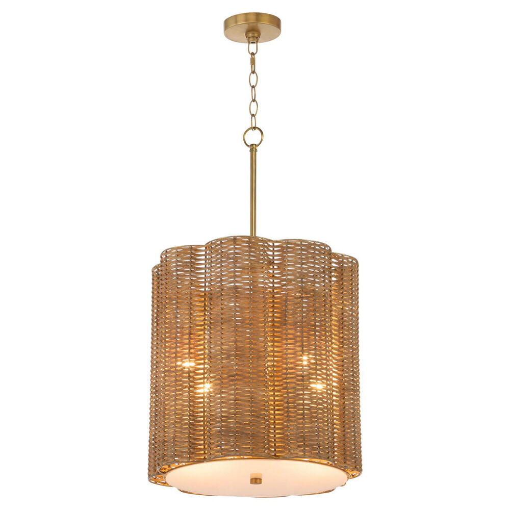 Cyan Design Cyan Design Bombora Natural Cane and Antique Brass Pendant Light with Scalloped Shade 11936