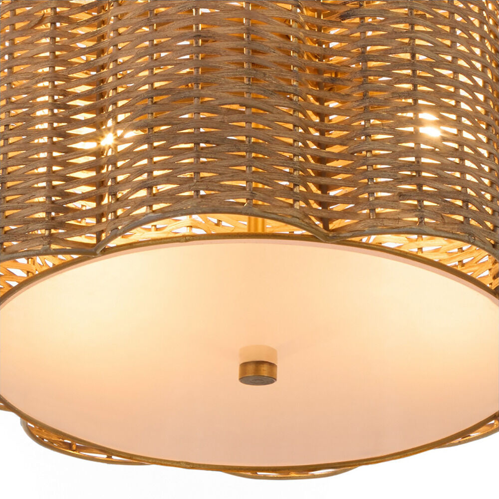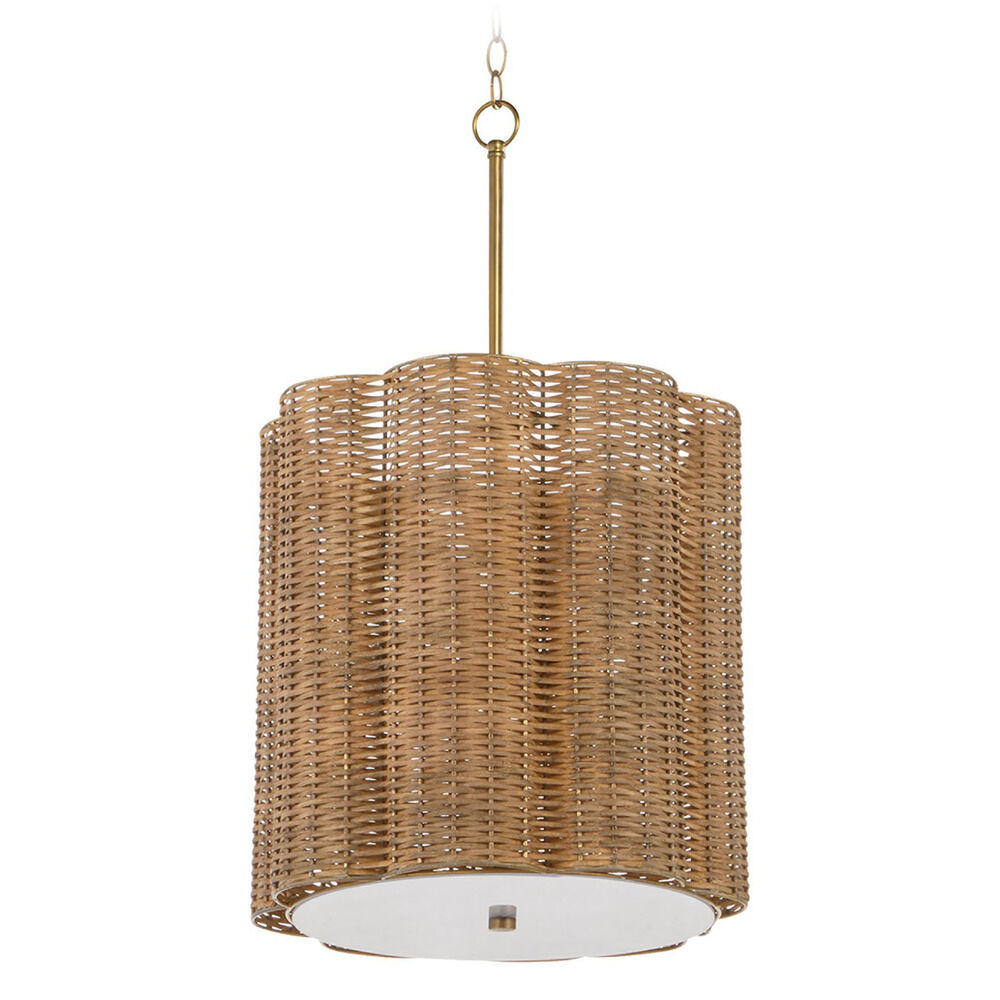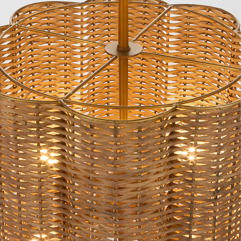 Cyan Design Bombora Natural Cane and Antique Brass Pendant Light with Scalloped Shade