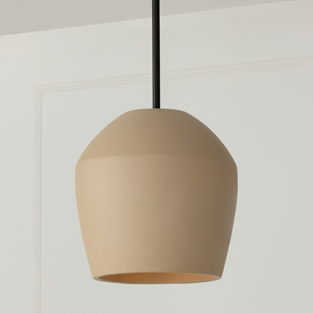 The Della Medium Pendant in Terracotta Sand by Capital Lighting highlights the beauty of artisan craftsmanship with its organic form and natural variation. Handcrafted from terracotta and painted by hand, each pendant carries its own unique character, ensuring that no two are exactly alike. The sculpted silhouette is finished in a sandy brown tone with warm undertones, bringing a sense of comfort and earthiness to interiors. Matte Black metal accents ground the design, creating a striking contrast that enhances its modern yet timeless appeal.