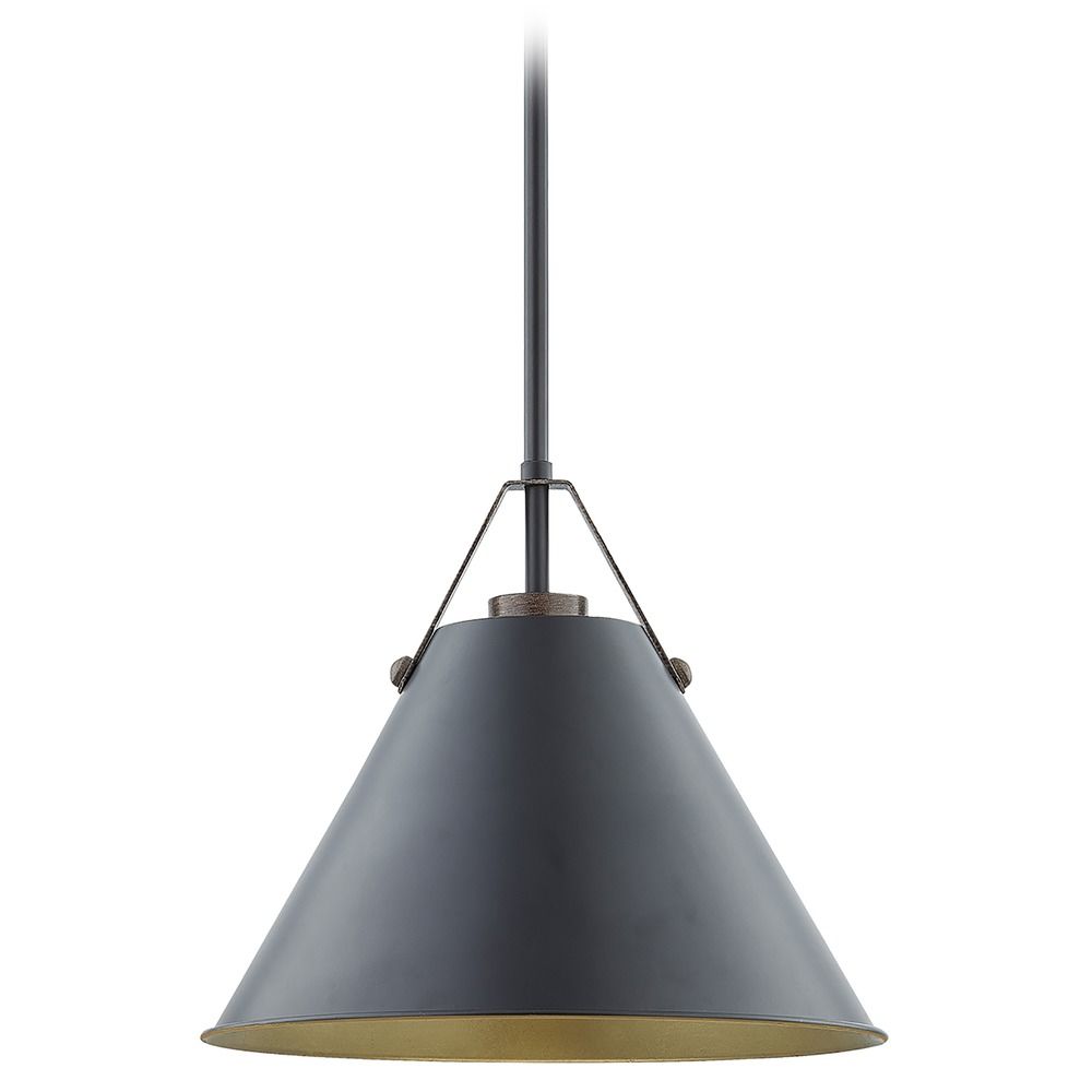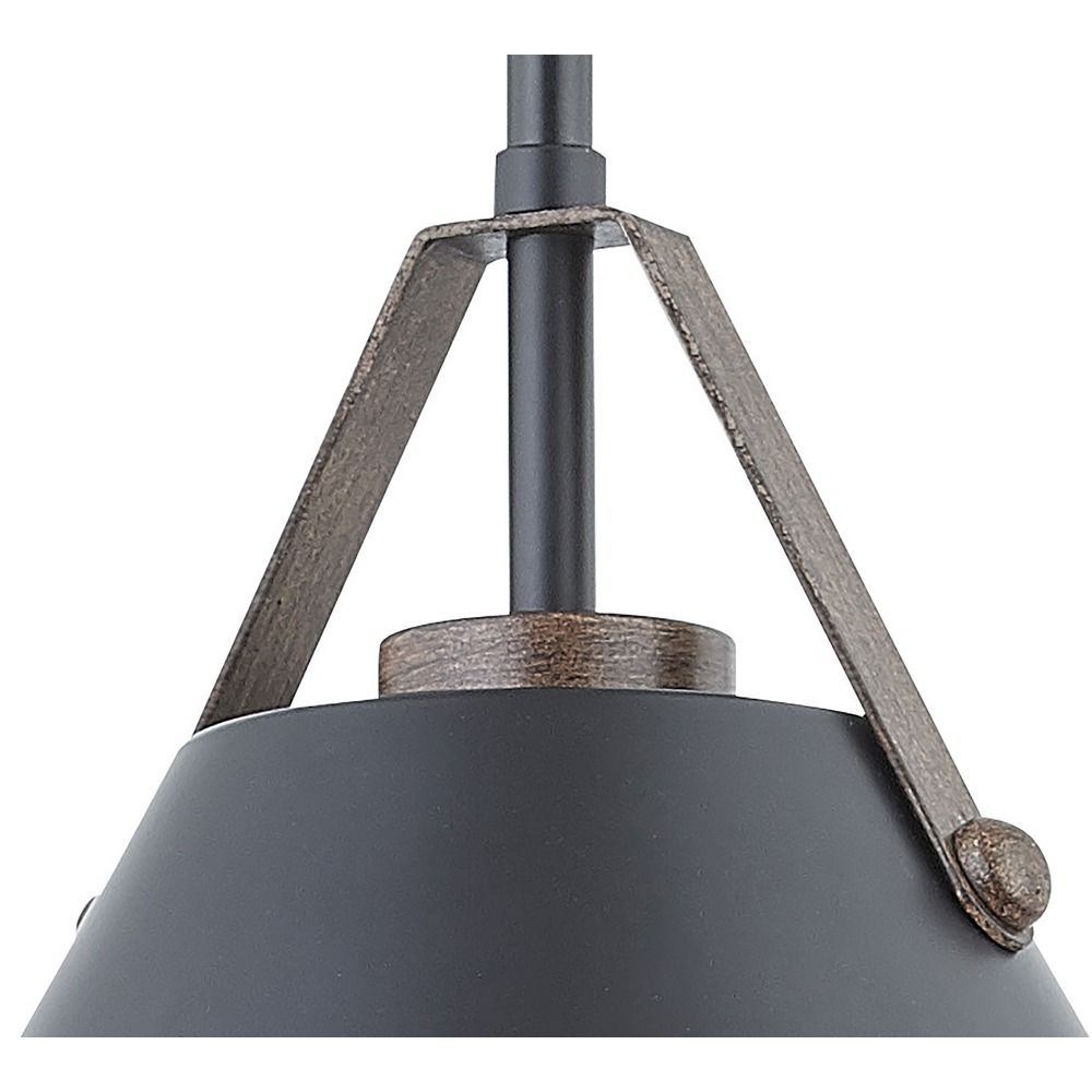 13 inch rustic pendant light in a black finish with wood grain accent.