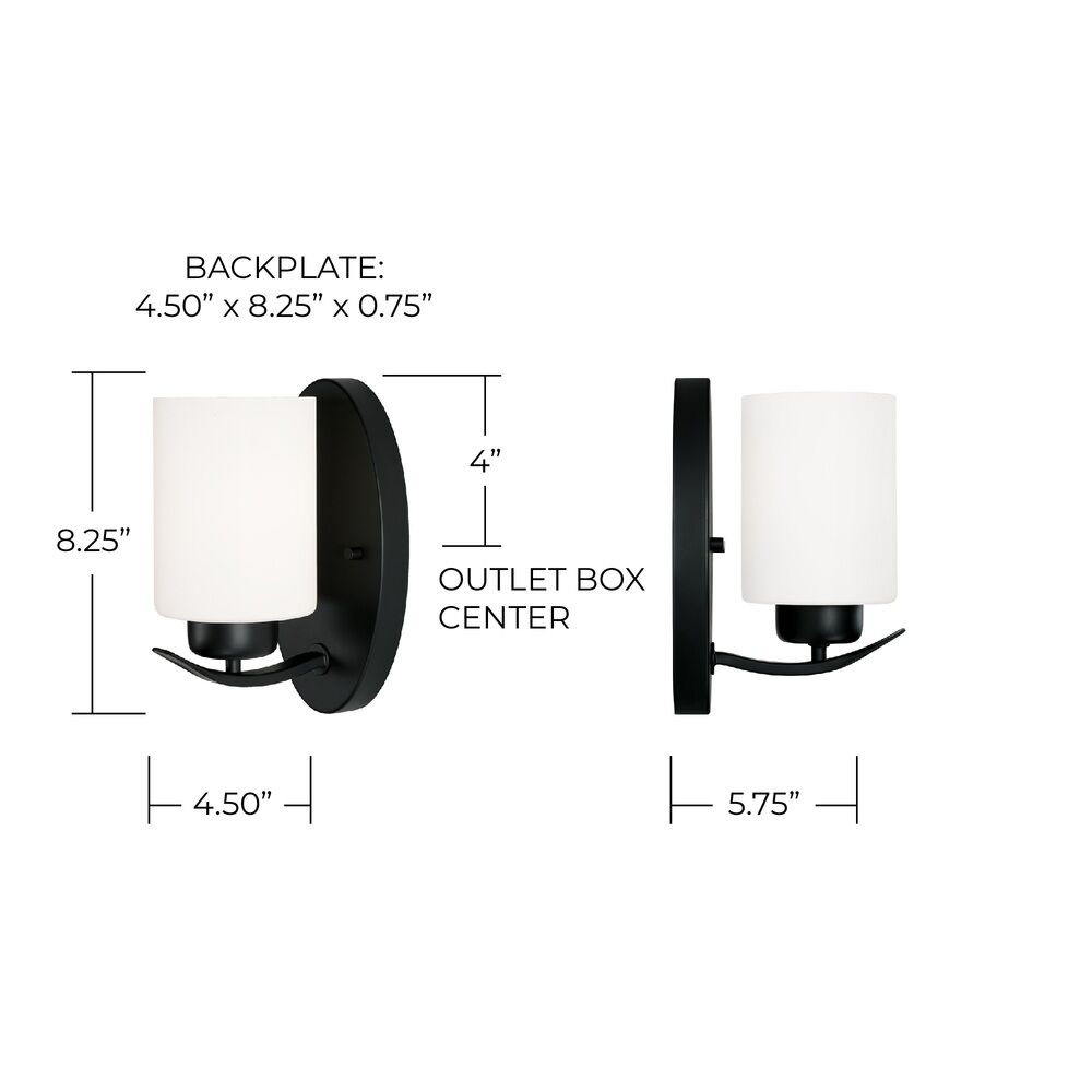 The following are detailed specifications about the Dixon Wall Sconce in Matte Black by HomePlace by Capital Lighting.