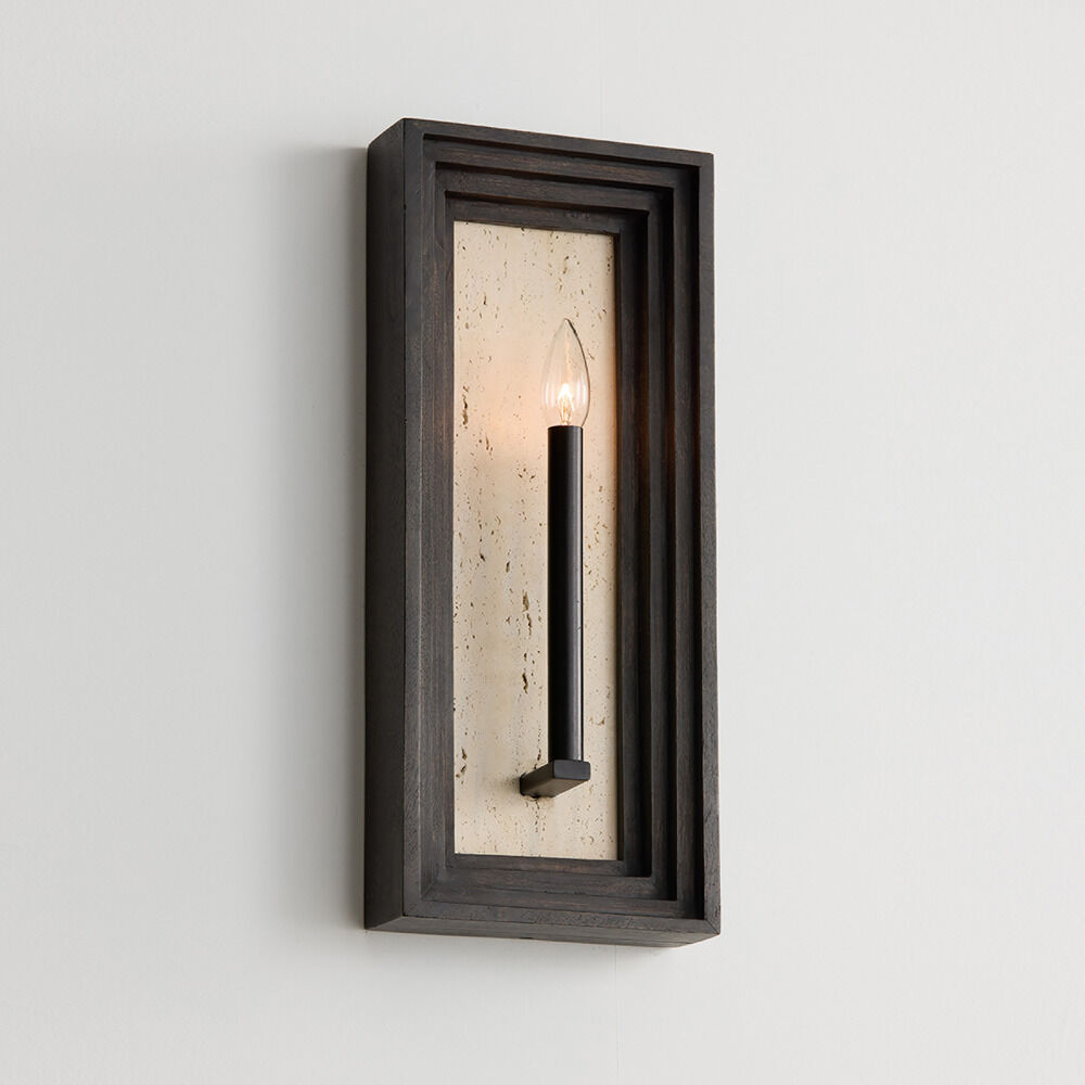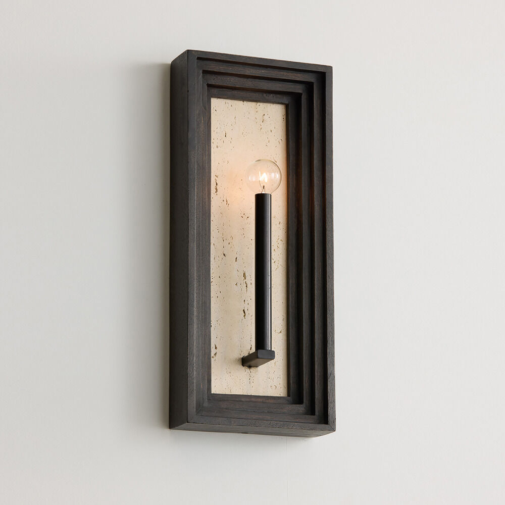 The Dunn Wall Sconce in Espresso Stain & Black by Capital Lighting is a striking blend of natural materials and modern design. Handcrafted from mango wood, its sculptural form brings organic texture and depth, while the dark Espresso stain emphasizes a moody, sophisticated aesthetic. A natural Travertine backplate enhances the design by reflecting light with subtle warmth, creating visual intrigue and dimension in any setting. Matte Black accents provide a crisp contrast, grounding the piece with contemporary detail.