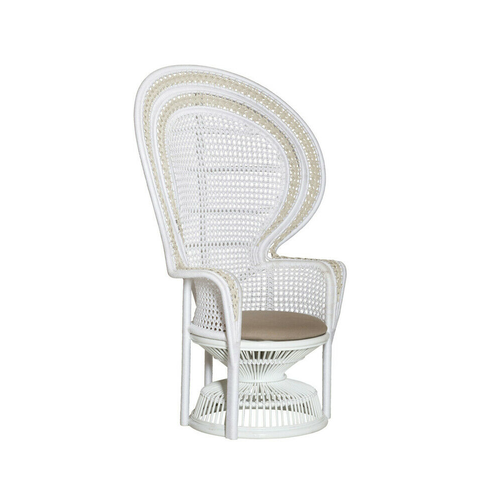 This iconic style of rattan chair has long been associated with royalty and empowerment, gaining renewed popularity in the 1960s and 1970s as a symbol of relaxed glamour and individuality. Today, the Emanuelle White Armchair carries that legacy forward, embodying modern luxury through its blend of bohemian character and refined craftsmanship.