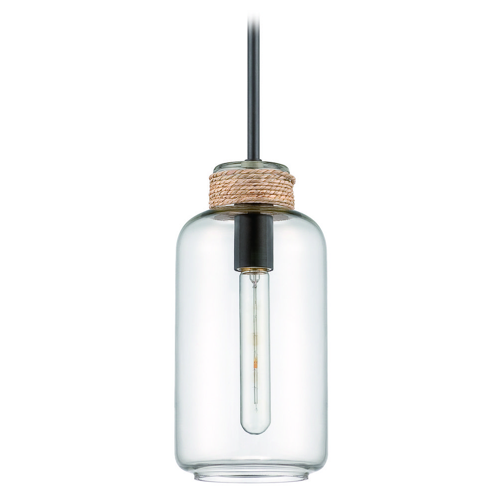 Vintage / retro / industrial espresso with rope accent 1 light mini-pendant light with clear w/rope accent glass shade