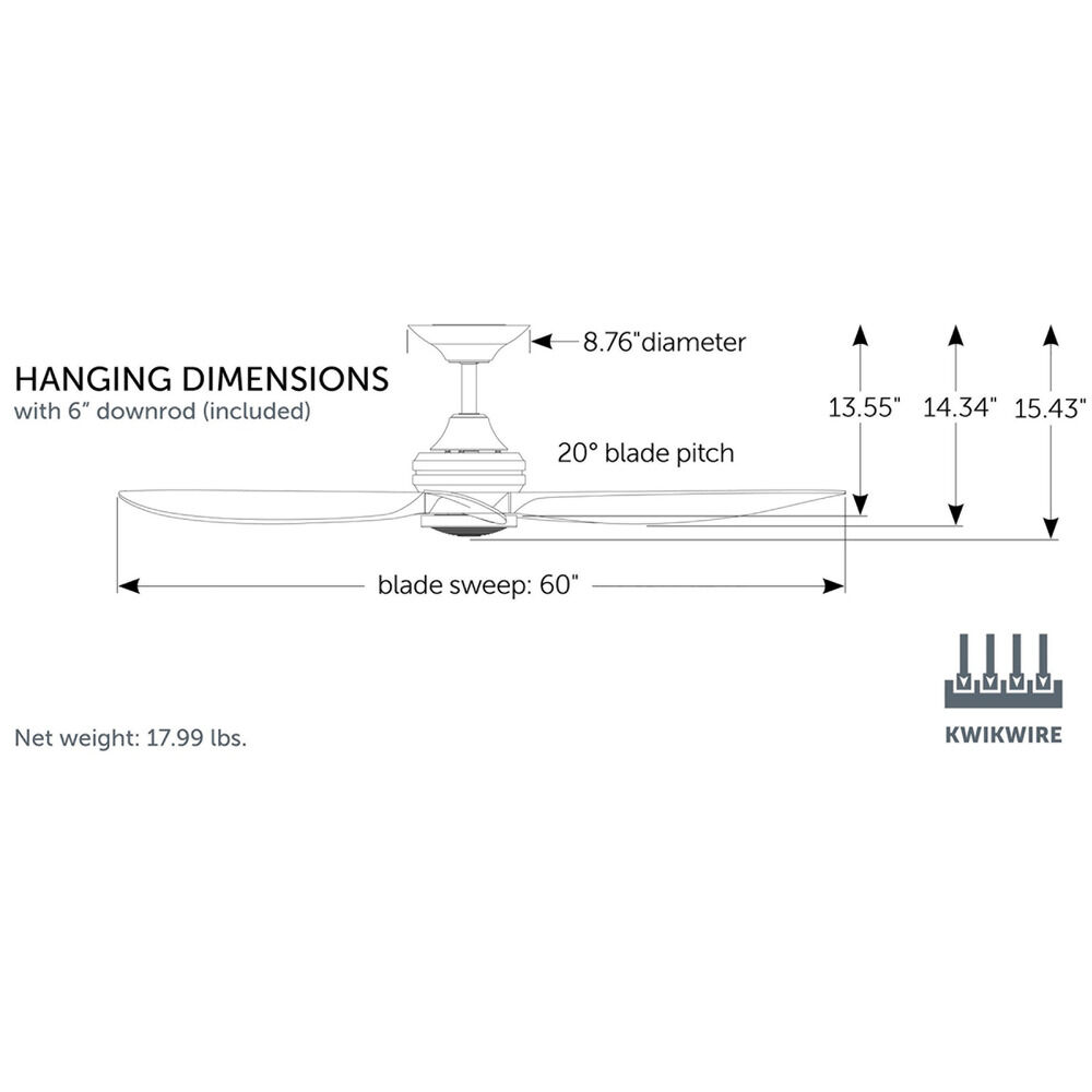 The following are detailed specifications about the Fanimation Fans Aviara Black LED Ceiling Fan with Light.