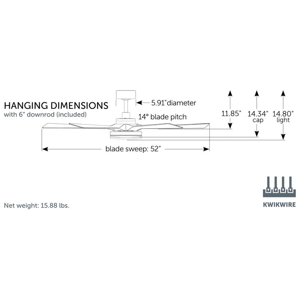 The following are detailed specifications about the Fanimation Fans Torchaire 52 Brushed Nickel LED Ceiling Fan with Light.