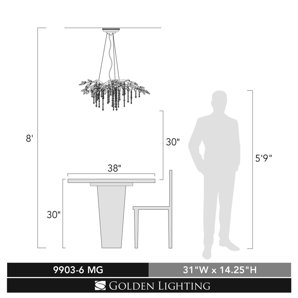 Golden Lighting Autumn Twilight Mystic Gold ChandelierManufacturer: Golden Lighting Model #: 9903-6 MG Golden Lighting Autumn Twilight Mystic Gold Chandelier
