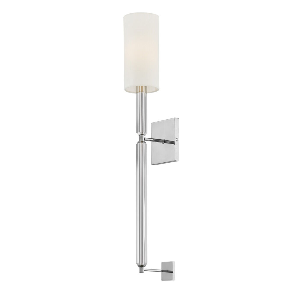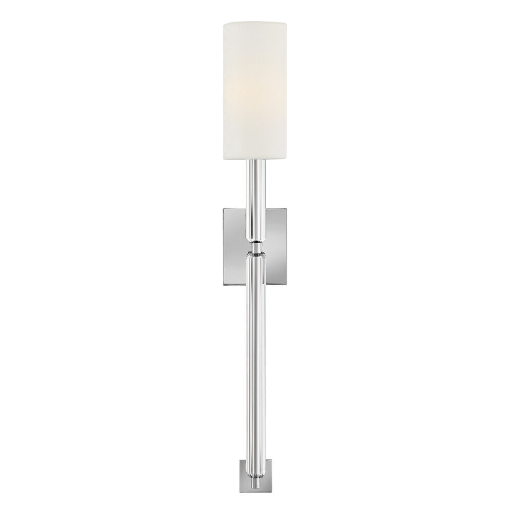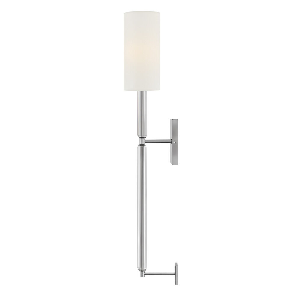 Contemporary / modern chrome 1-light sconce with white linen shade