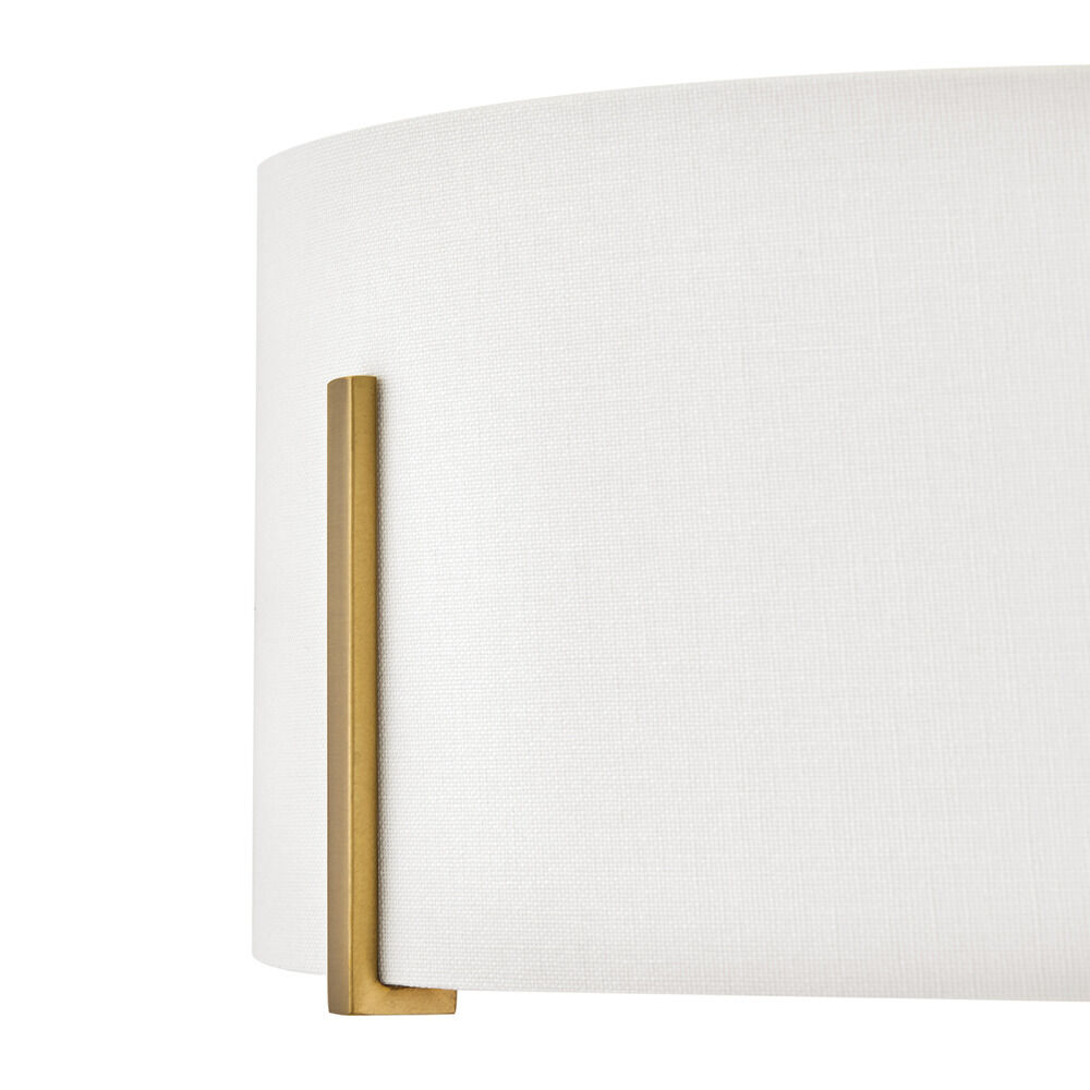 Contemporary / modern lacquered brass 3-light indoor ceiling light with off-white fabric,glass shade