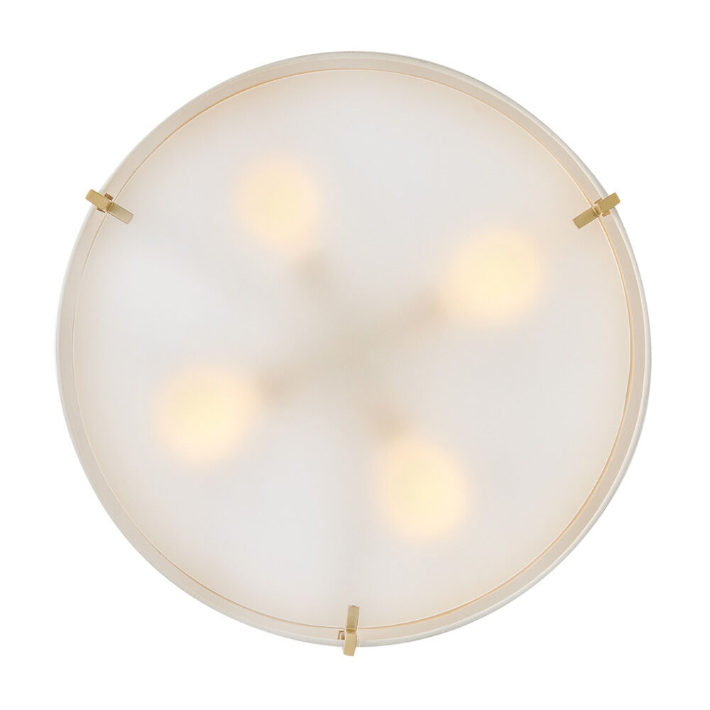 Contemporary / modern lacquered brass 4-light indoor ceiling light with off-white fabric,glass shade