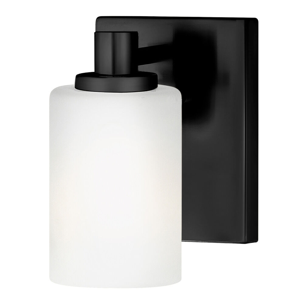 Contemporary / modern black 1-light sconce with etched opal glass shade