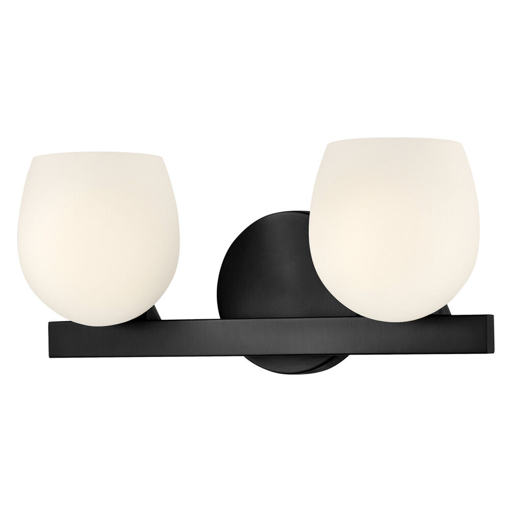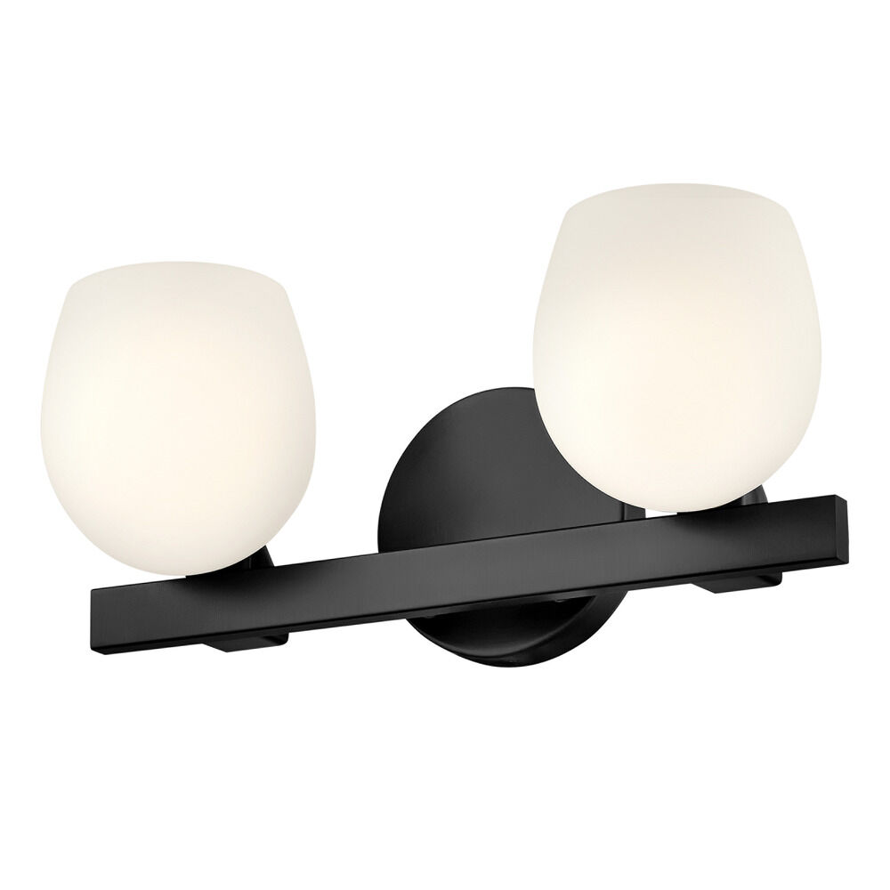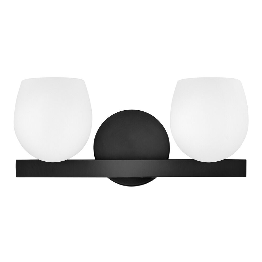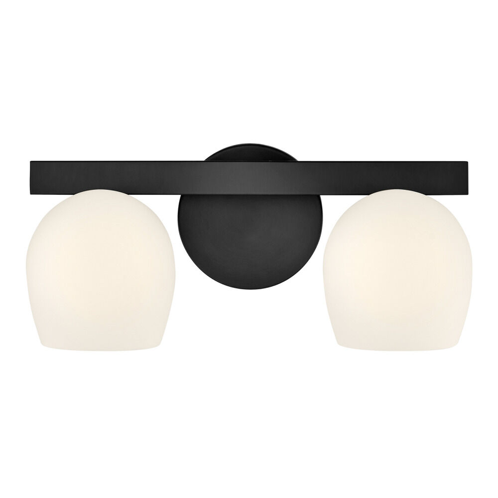 Contemporary / modern black 2-light bathroom light with etched opal glass shade