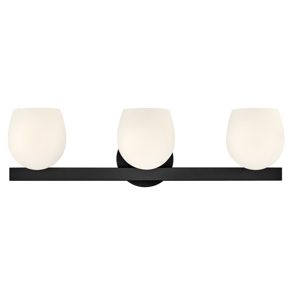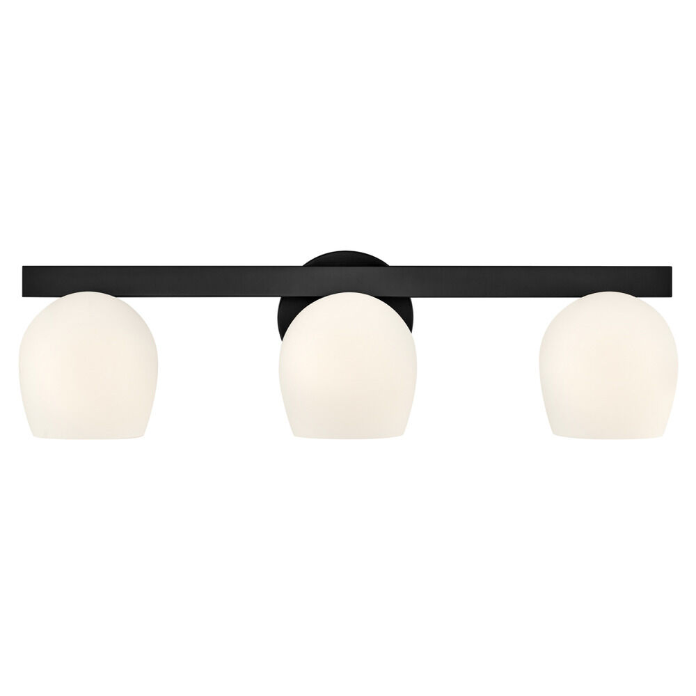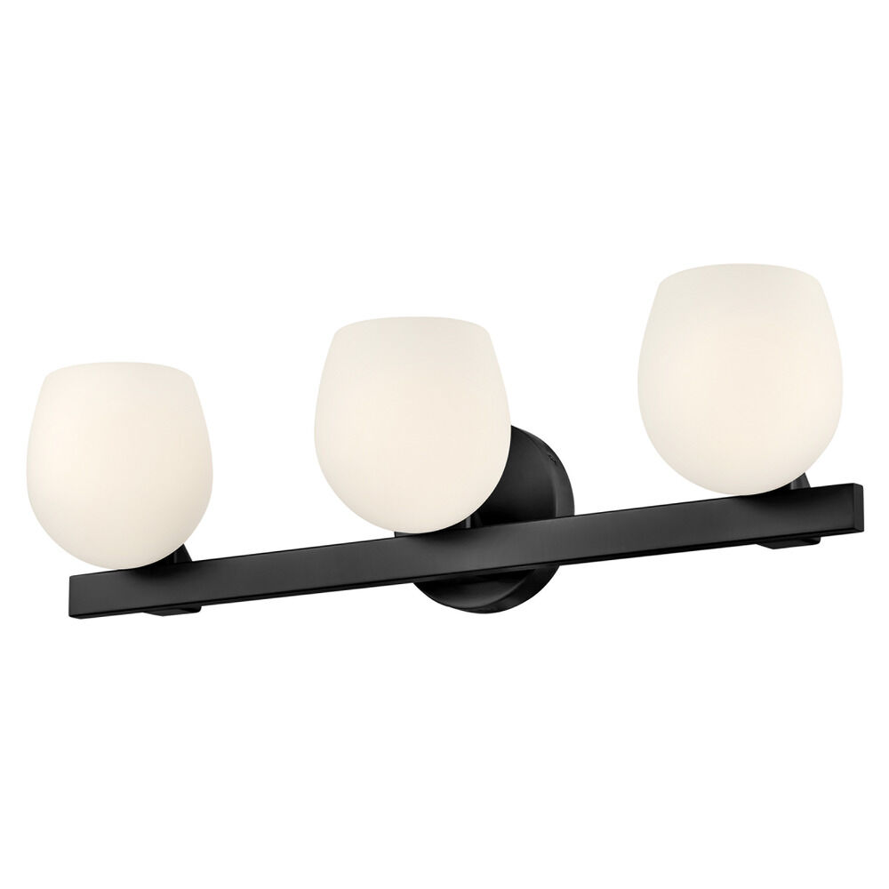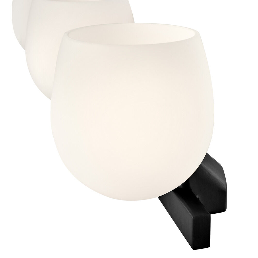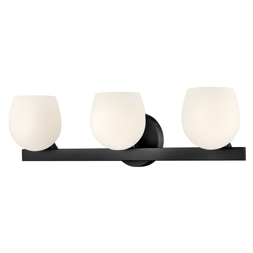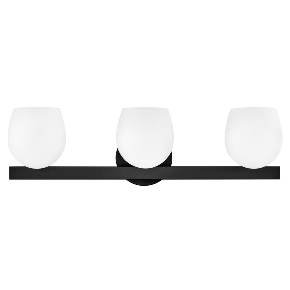 Contemporary / modern black 3-light bathroom light with etched opal glass shade