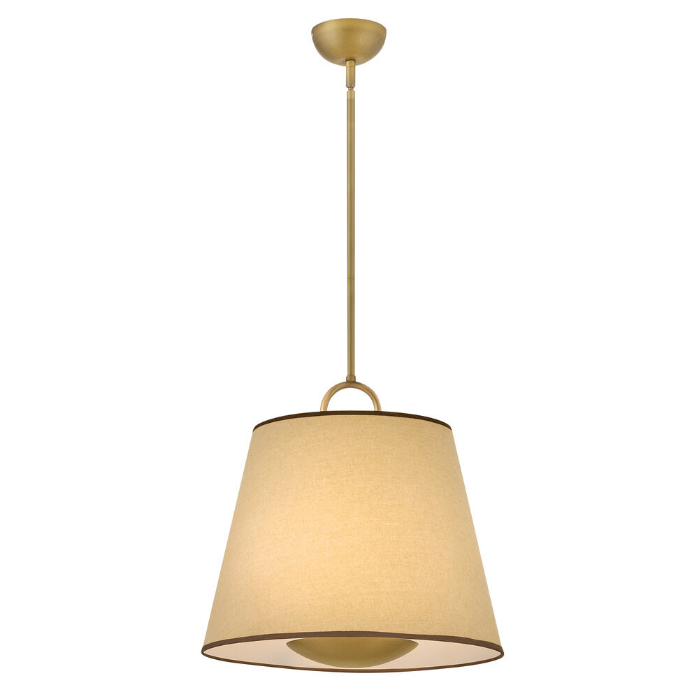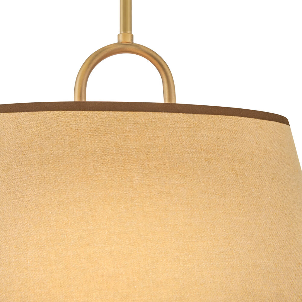 Transitional lacquered brass 3-light pendant light with light beige fabric shade
