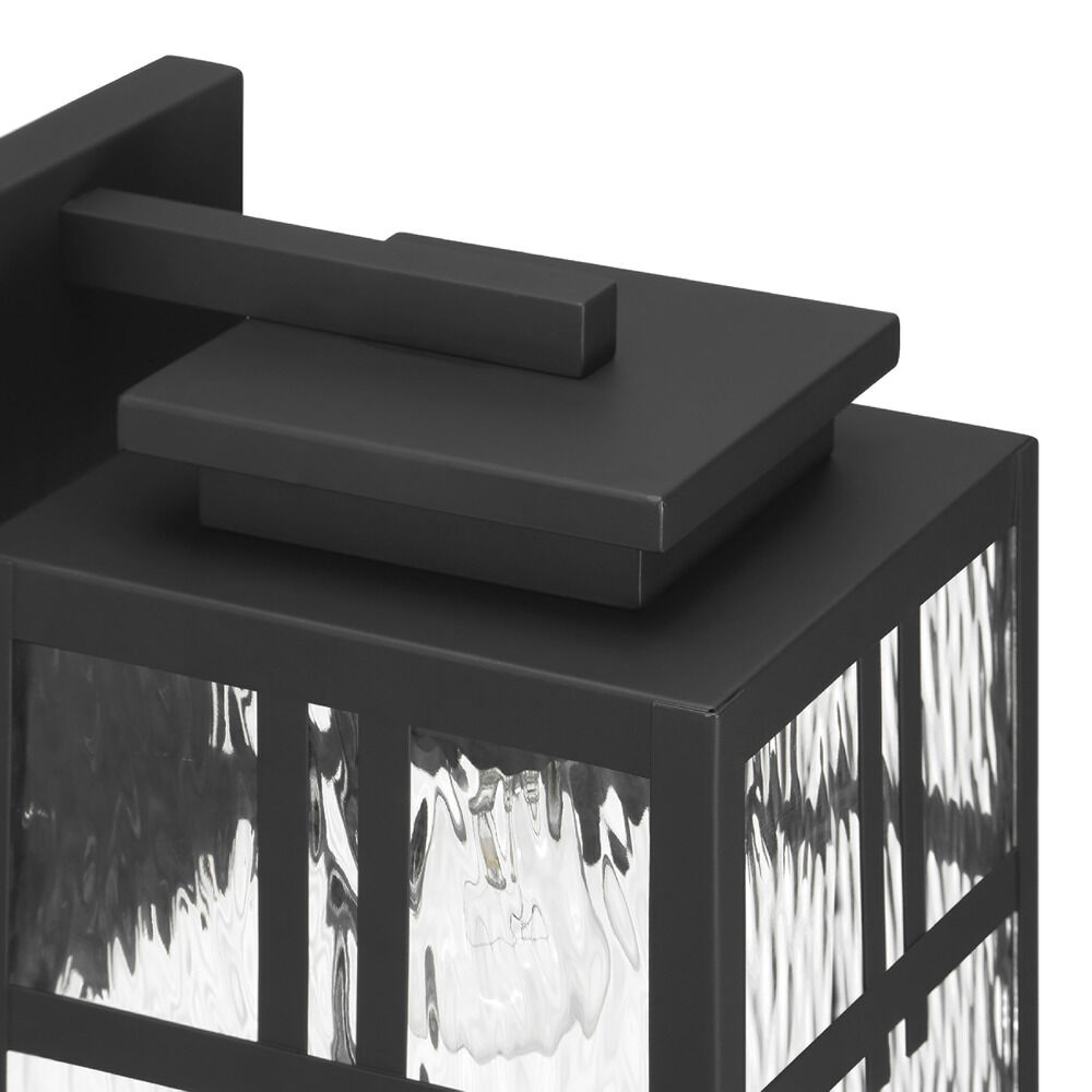 Traditional matte black 1-light outdoor wall light with clear,textured,water textured water glass shade
