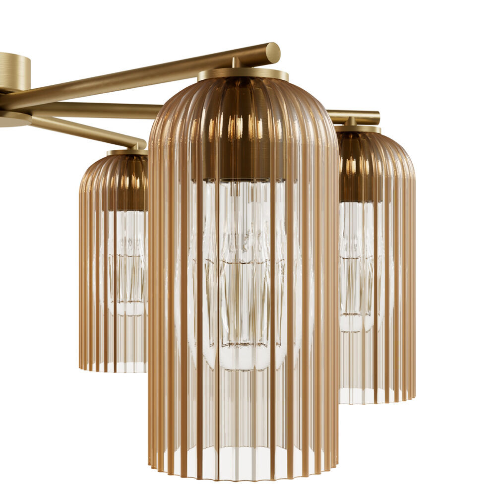 Contemporary / modern luxe gold 6-light chandelier with clear,ribbed amber glass shade