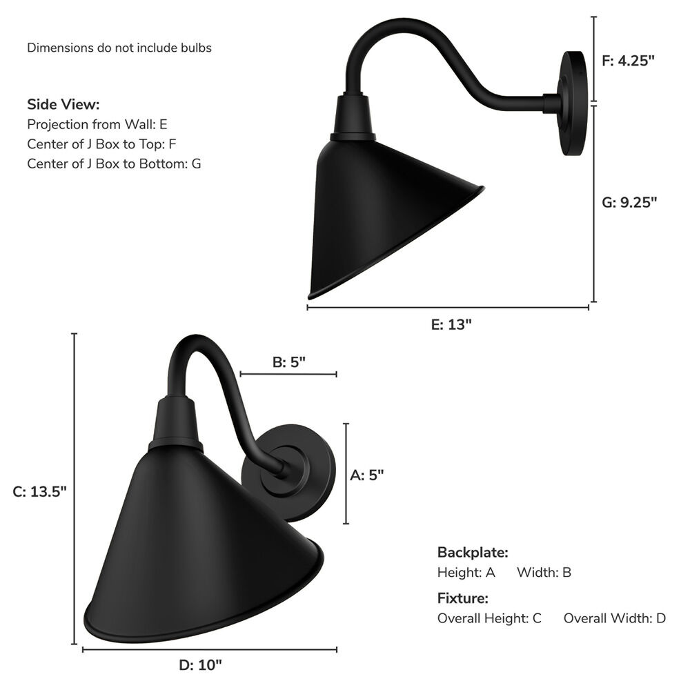 The following are detailed specifications about the Hunter Fan Company Cassius Matte Black Barn Light.