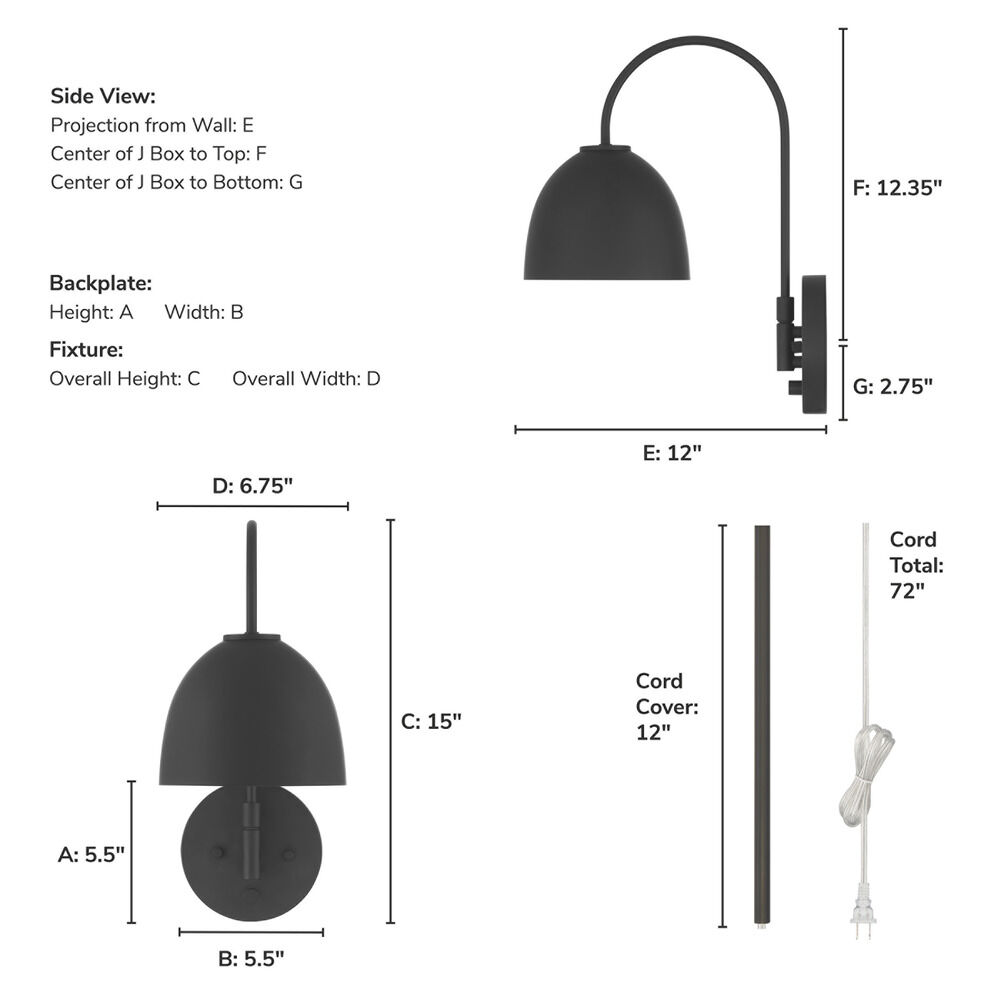 This Hunter Fan Company Erling Matte Black LED Plug and Cord Wall Lamp is part of the Erling Collection from Hunter Fan Company. The following items are also part of the Erling Collection.