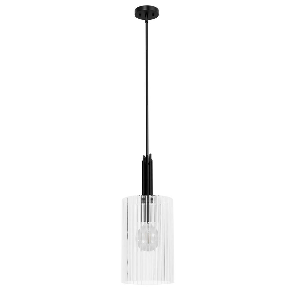 Contemporary / modern matte black 1-light mini-pendant light with clear,fluted clear fluted glass shade