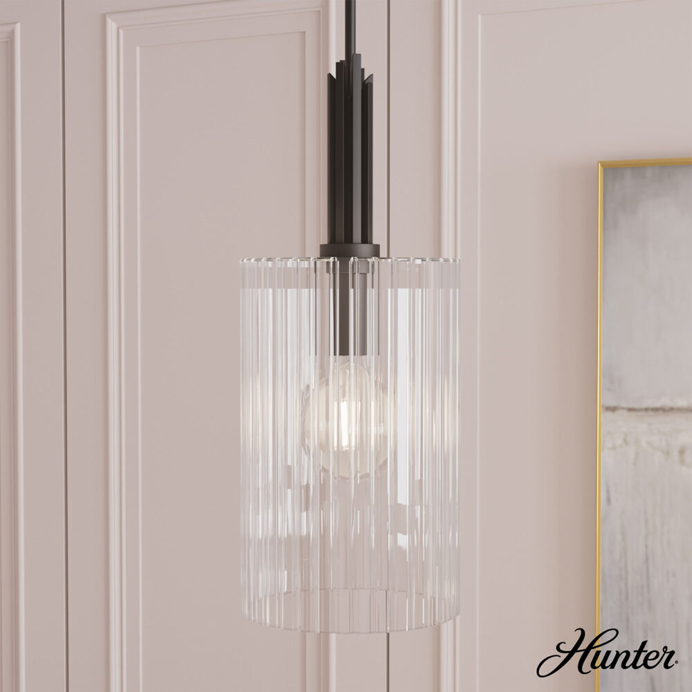 Hunter Fan Company Hunter Fan Company Gatz Matte Black Mini-Pendant Light with Cylindrical Shade 45225