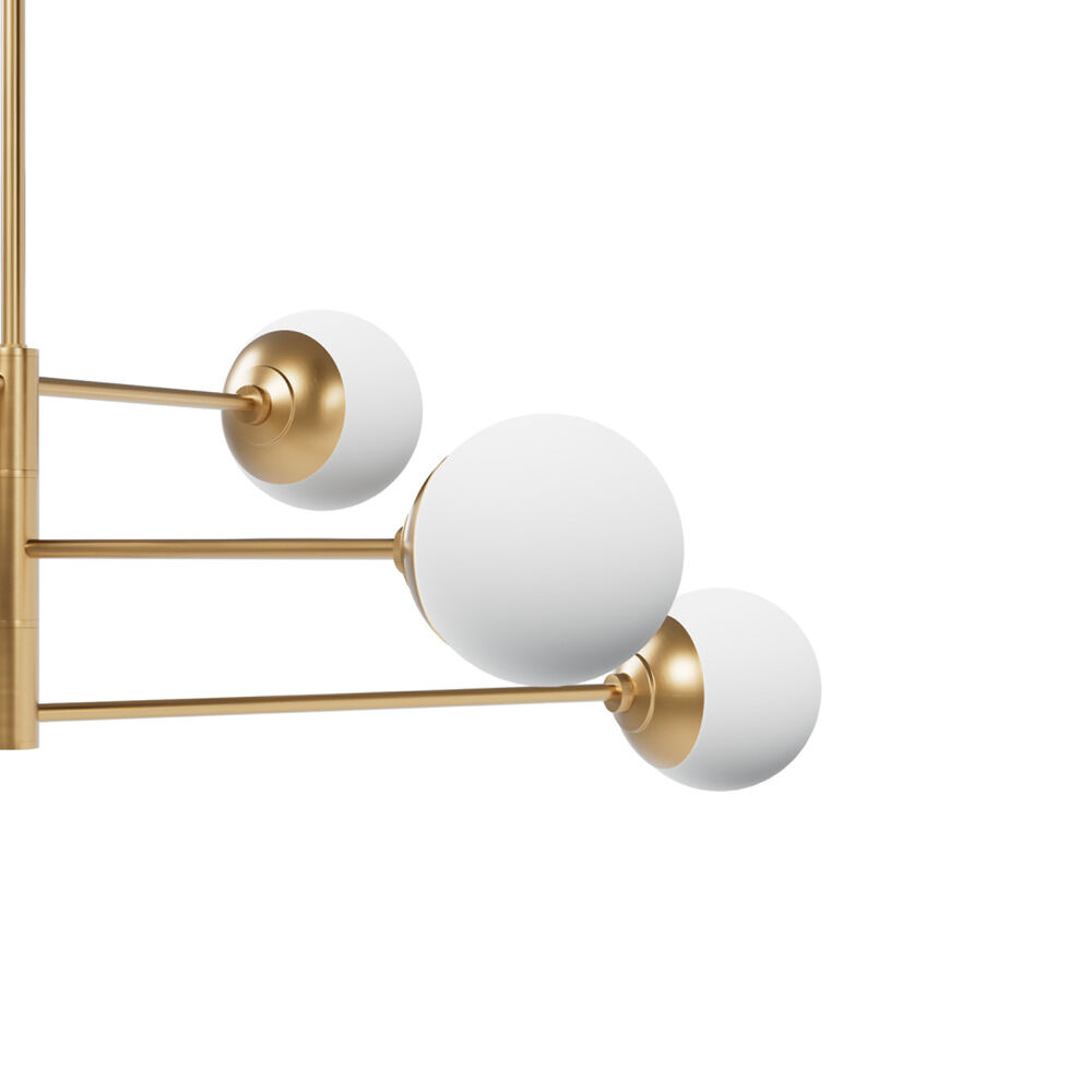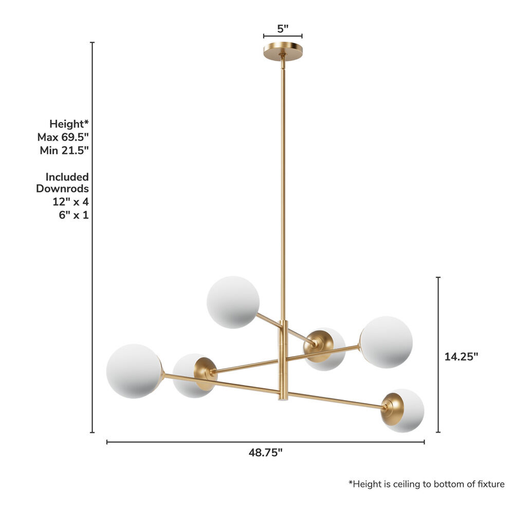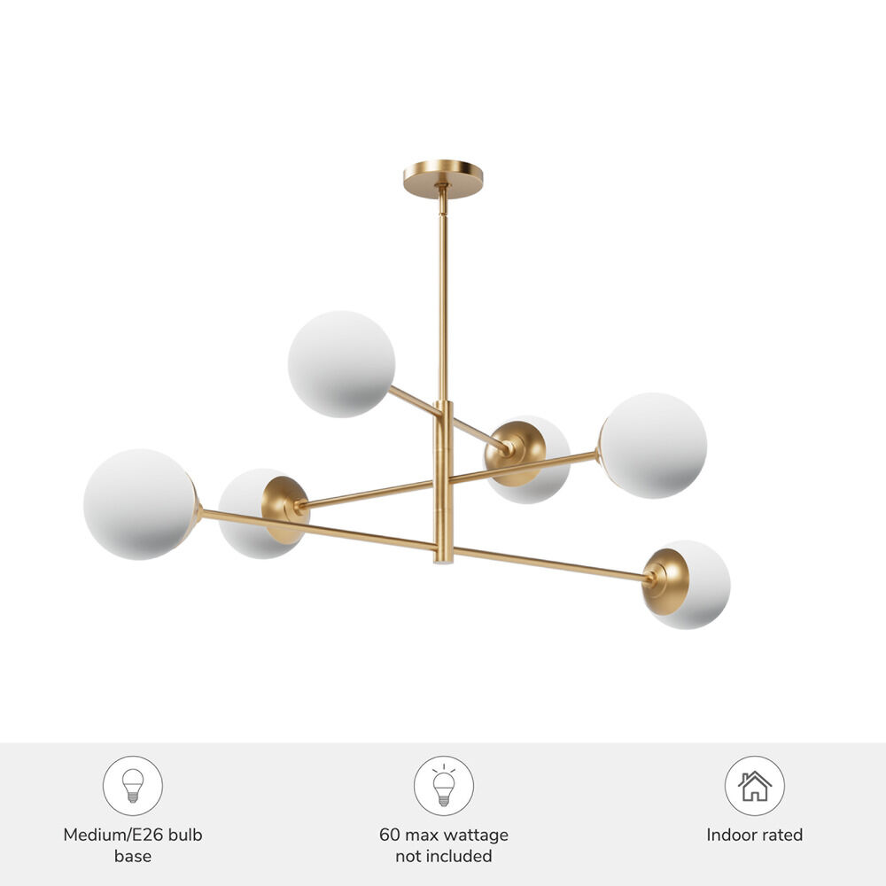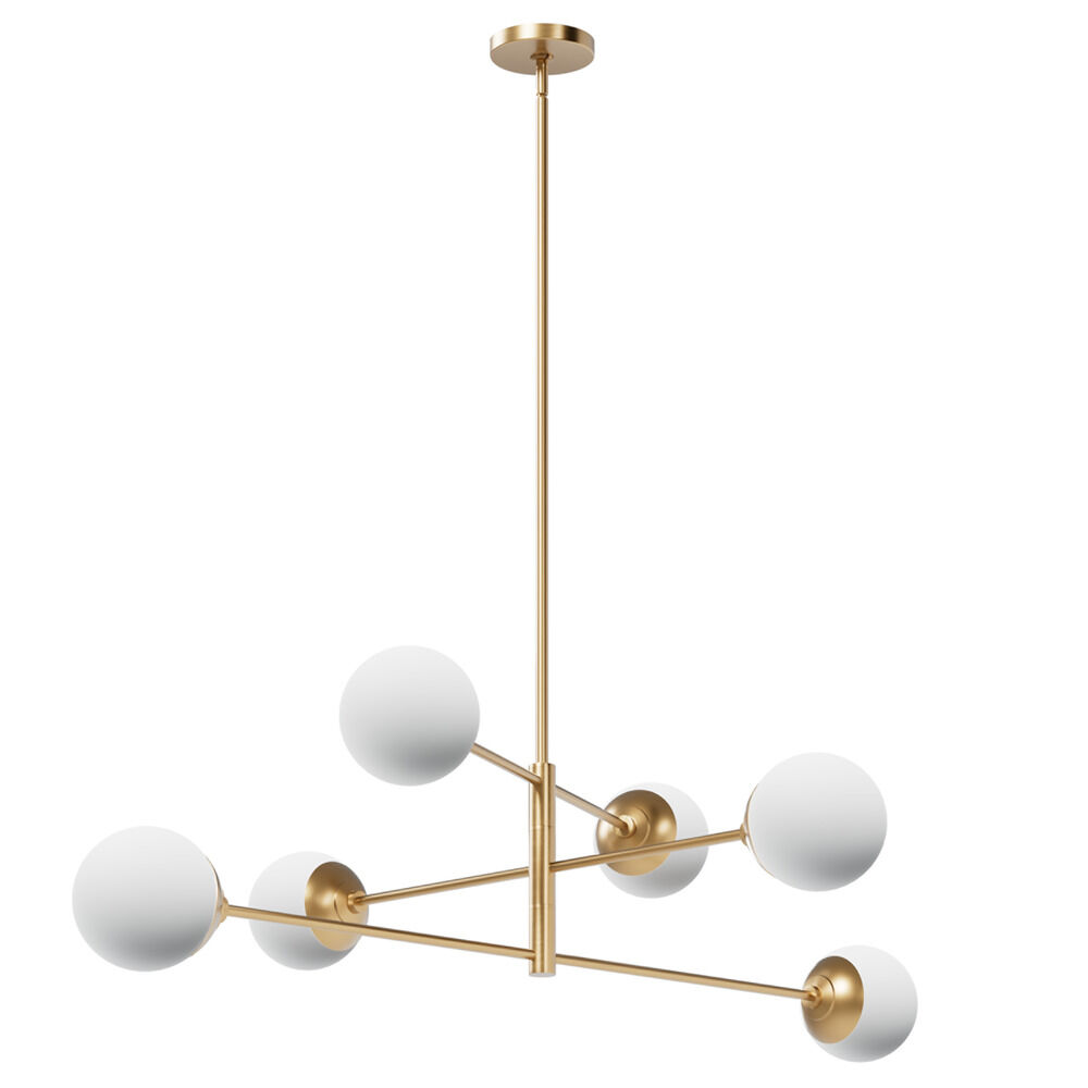 Mid-century modern alturas gold 6-light chandelier with cased white glass shade