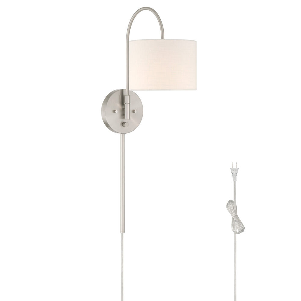 Contemporary / modern brushed nickel 1-light wall lamp with fabric shade