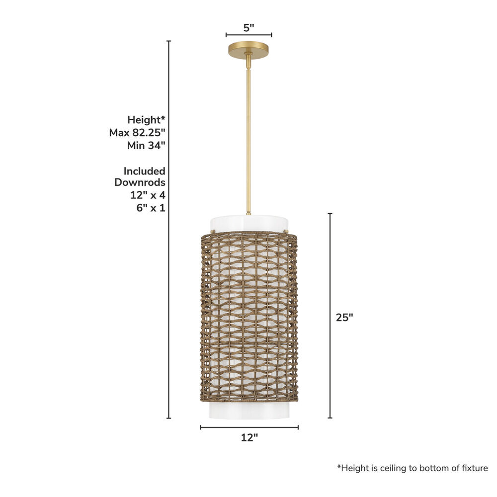 The following are detailed specifications about the Hunter Fan Company Laila Luxe Gold Pendant Light with Cylindrical Shade.