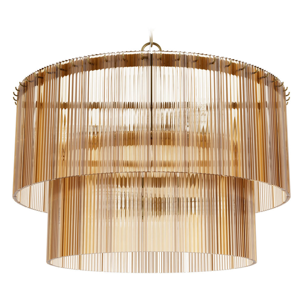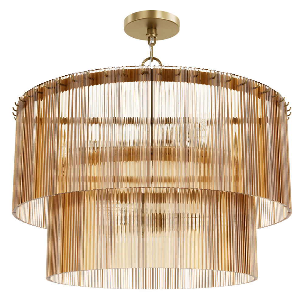 Contemporary / modern luxe gold 6-light pendant light with clear,ribbed amber glass shade