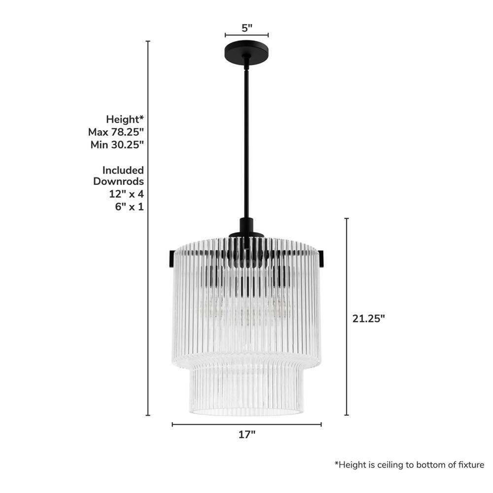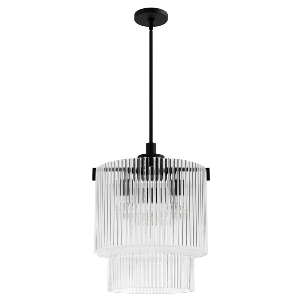 Contemporary / modern matte black 3-light pendant light with clear,ribbed clear glass shade