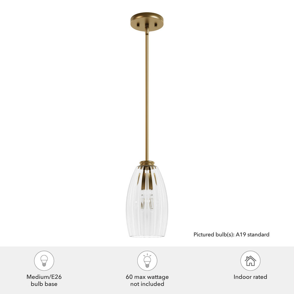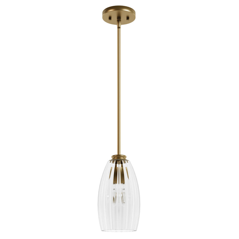 Contemporary / modern luxe gold 1-light mini-pendant light with clear,fluted clear fluted glass shade
