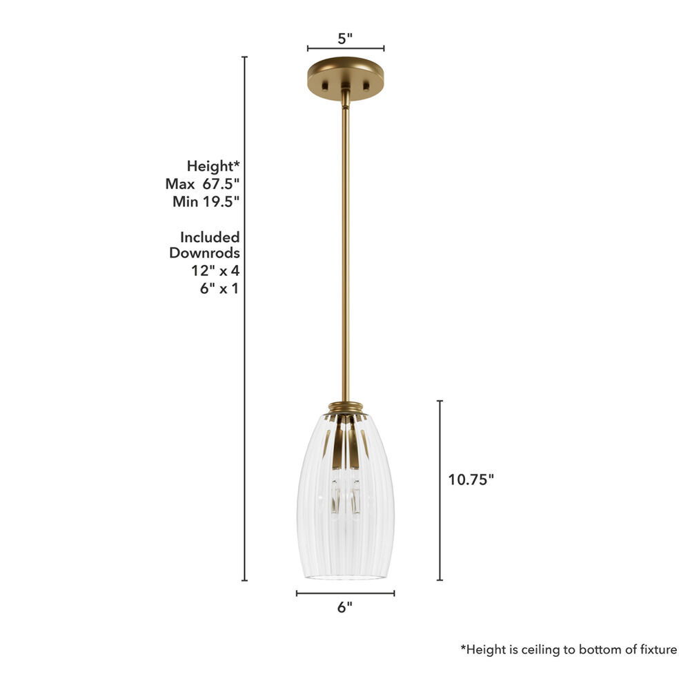 The following are detailed specifications about the Hunter Fan Company Rossmoor Luxe Gold Mini-Pendant Light with Oblong Shade.