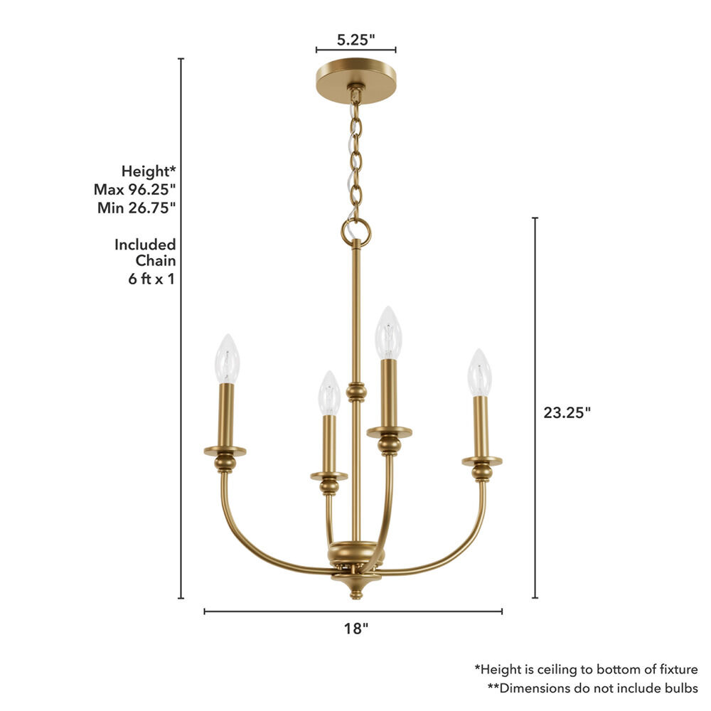The following are detailed specifications about the Hunter Fan Company Southcrest Luxe Gold Mini-Chandelier.