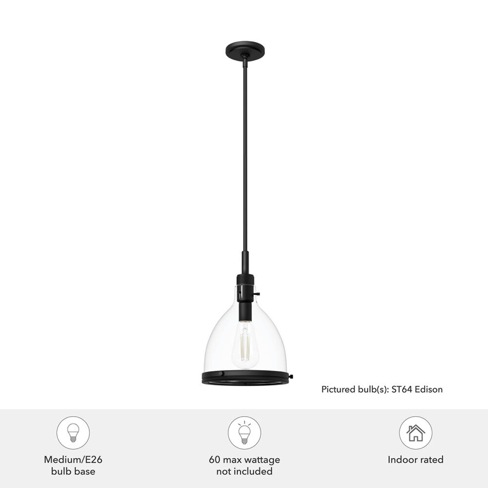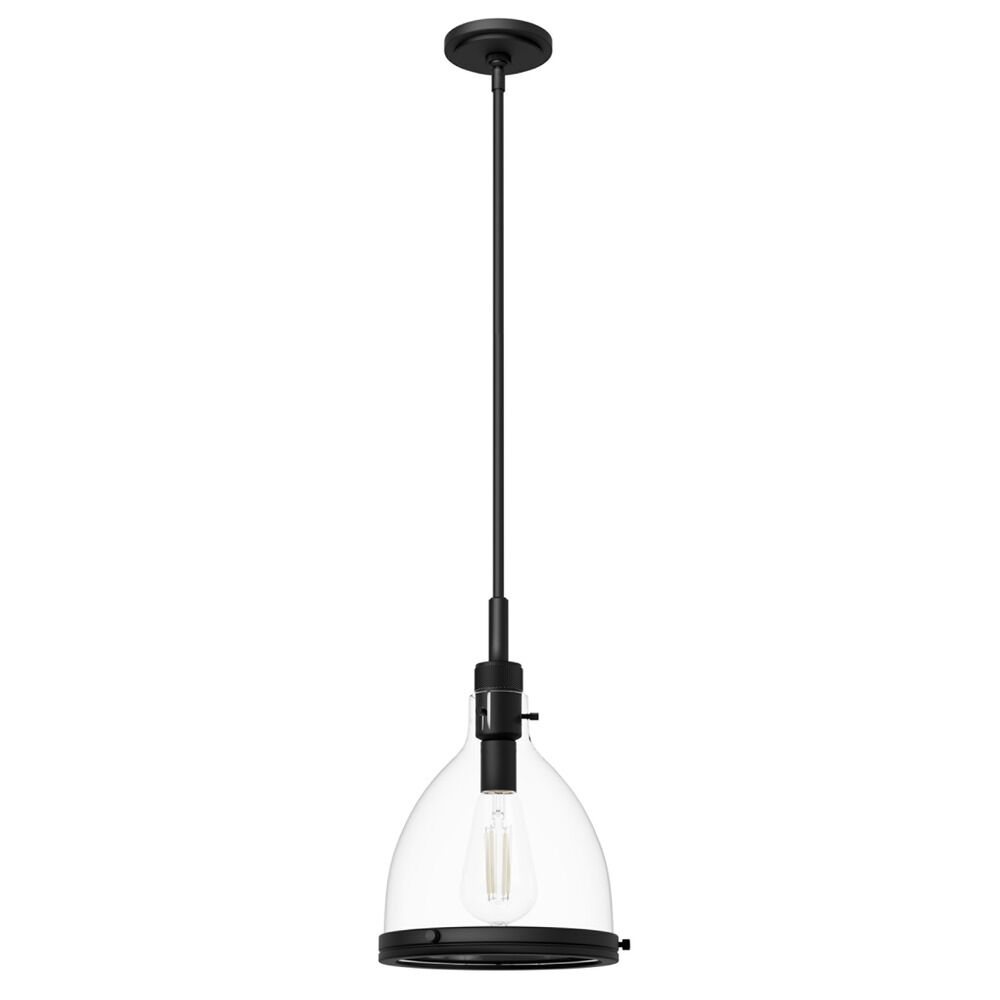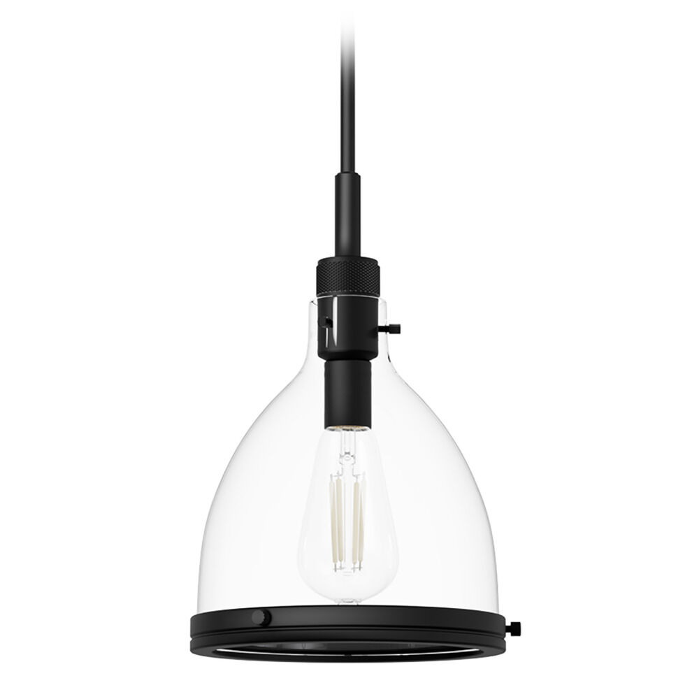Transitional matte black 1-light mini-pendant light with clear glass shade