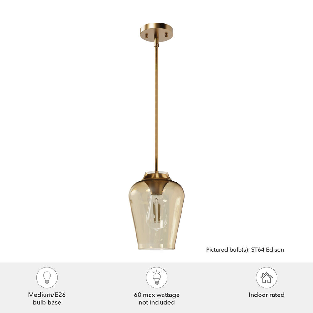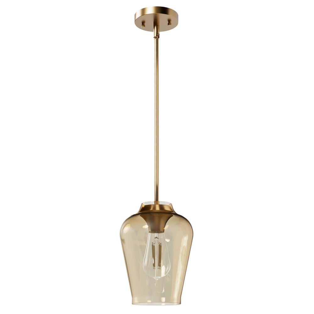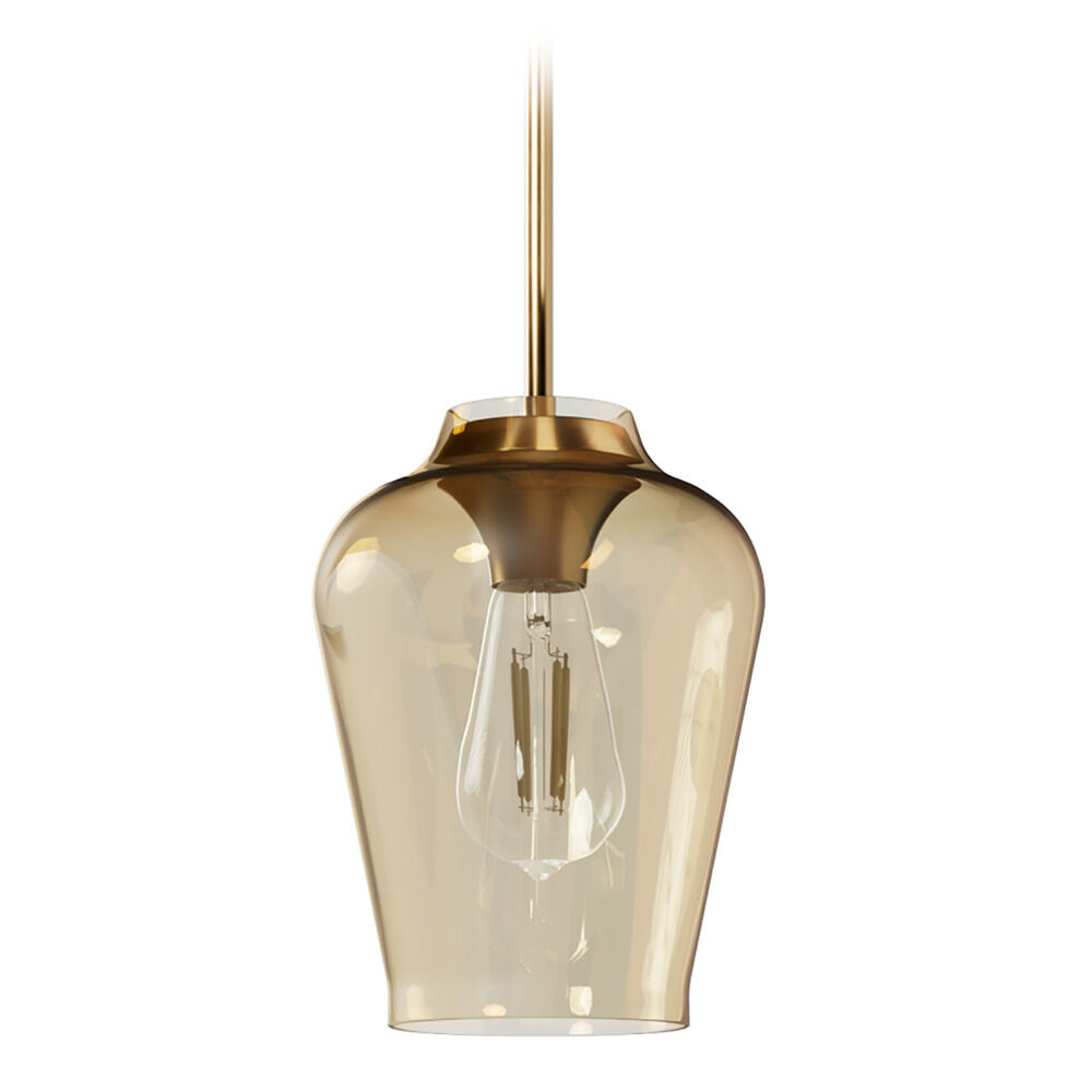 Contemporary / modern alturas gold 1-light mini-pendant light with clear amber iridescent glass shade